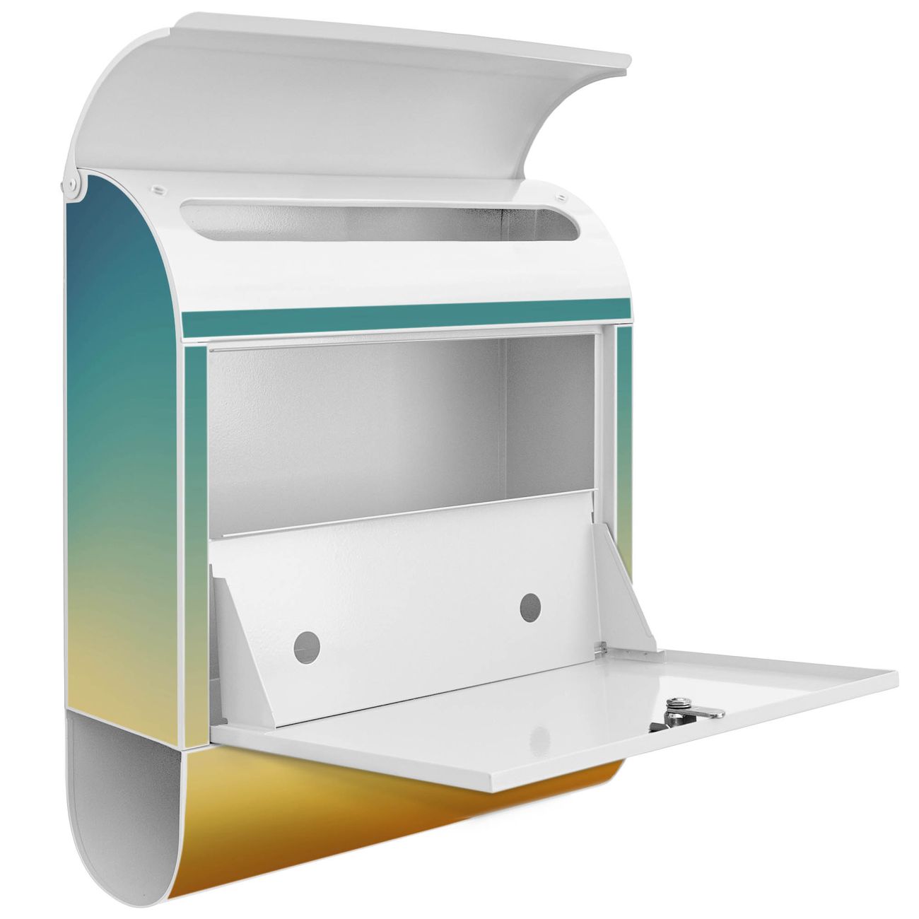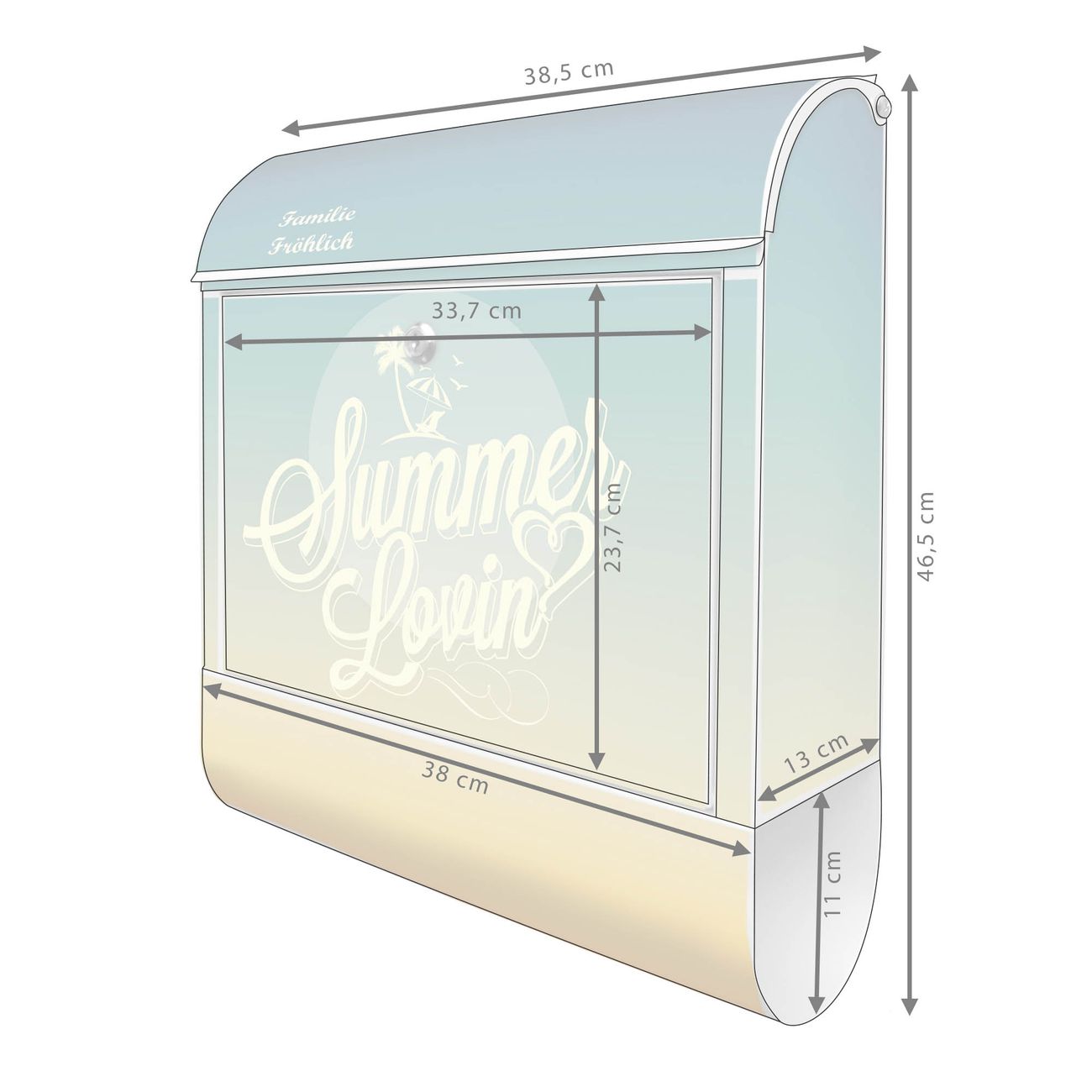 Der banjado Standbriefkasten mit Motiv Motiv Sommer Lovin kombiniert großzügigen Stauraum mit modernem Design. Durch das geräumige Fach finden auch große A4-Sendungen problemlos Platz. Die integrierte Zeitungsrolle sorgt dafür, dass Tageszeitungen und Magazine separat und griffbereit untergebracht sind. Der pulverbeschichtete Standfuß ist farblich passend zum Briefkasten gestaltet und sorgt für ein stimmiges Gesamtbild. Mit dem individuellen Motiv setzen Sie einen optischen Akzent, der sowohl praktisch als auch dekorativ ist.