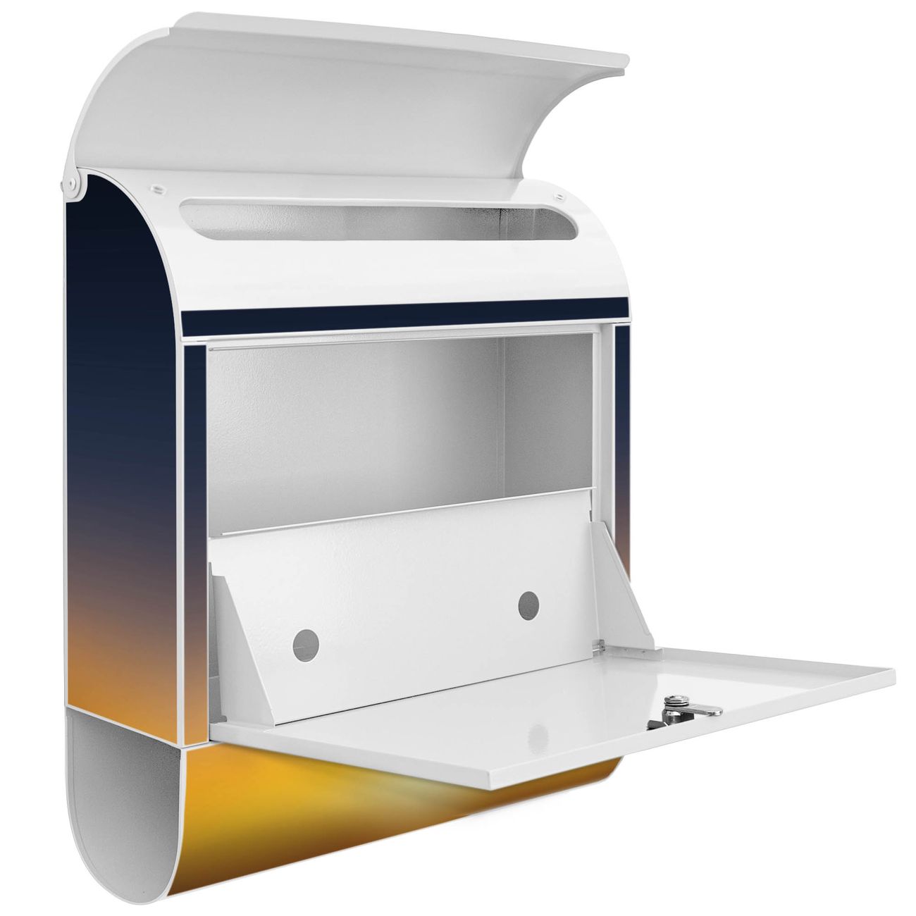 Der banjado Standbriefkasten mit Motiv Motiv Sommer Night kombiniert großzügigen Stauraum mit modernem Design. Durch das geräumige Fach finden auch große A4-Sendungen problemlos Platz. Die integrierte Zeitungsrolle sorgt dafür, dass Tageszeitungen und Magazine separat und griffbereit untergebracht sind. Der pulverbeschichtete Standfuß ist farblich passend zum Briefkasten gestaltet und sorgt für ein stimmiges Gesamtbild. Mit dem individuellen Motiv setzen Sie einen optischen Akzent, der sowohl praktisch als auch dekorativ ist.