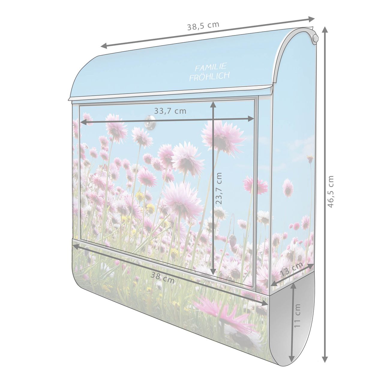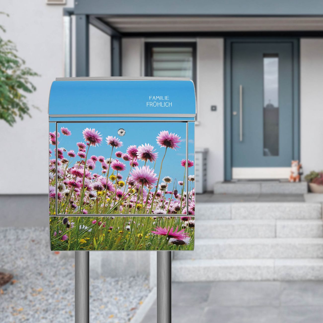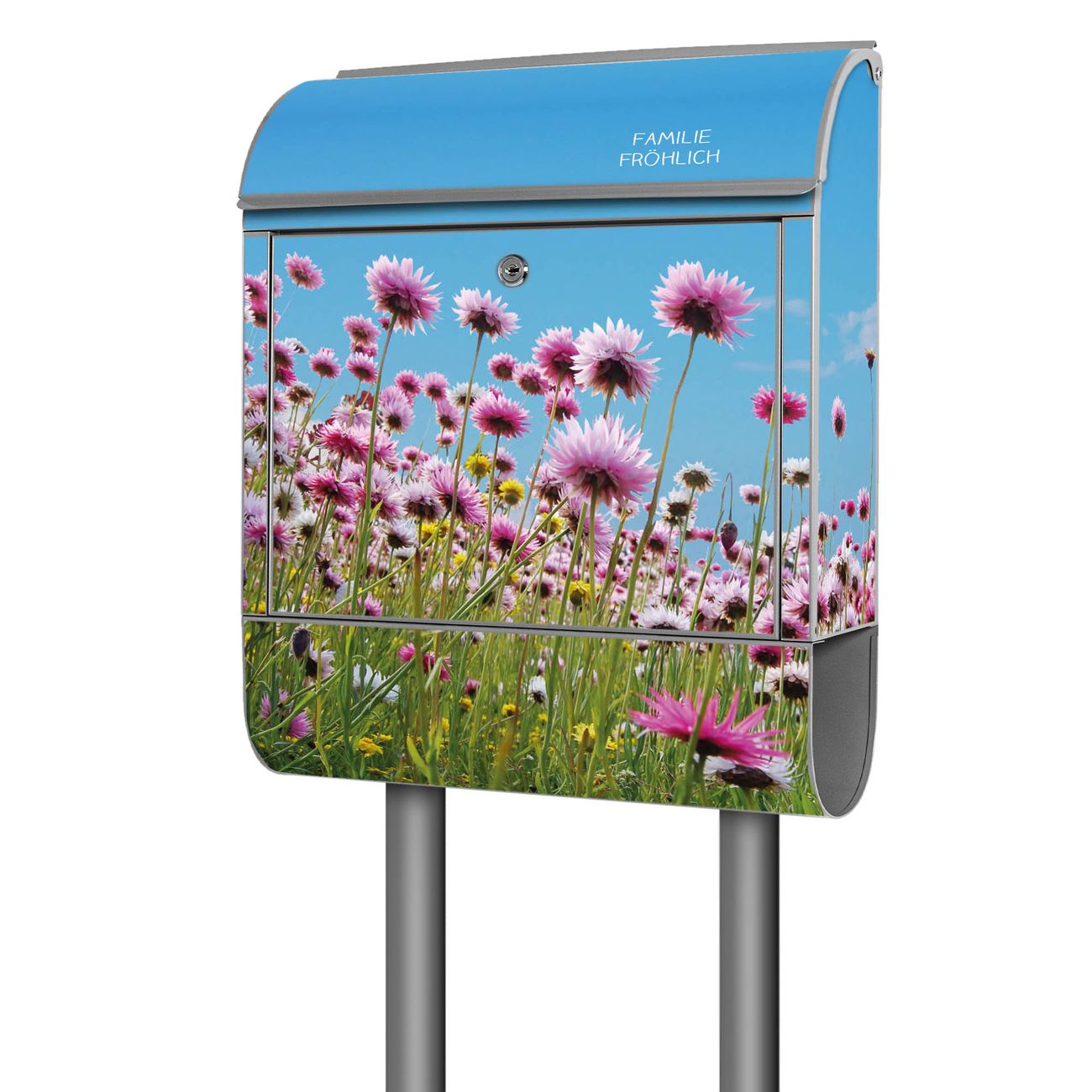 Der banjado Standbriefkasten mit Motiv Motiv Sommerblumen kombiniert großzügigen Stauraum mit modernem Design. Durch das geräumige Fach finden auch große A4-Sendungen problemlos Platz. Die integrierte Zeitungsrolle sorgt dafür, dass Tageszeitungen und Magazine separat und griffbereit untergebracht sind. Der pulverbeschichtete Standfuß ist farblich passend zum Briefkasten gestaltet und sorgt für ein stimmiges Gesamtbild. Mit dem individuellen Motiv setzen Sie einen optischen Akzent, der sowohl praktisch als auch dekorativ ist.