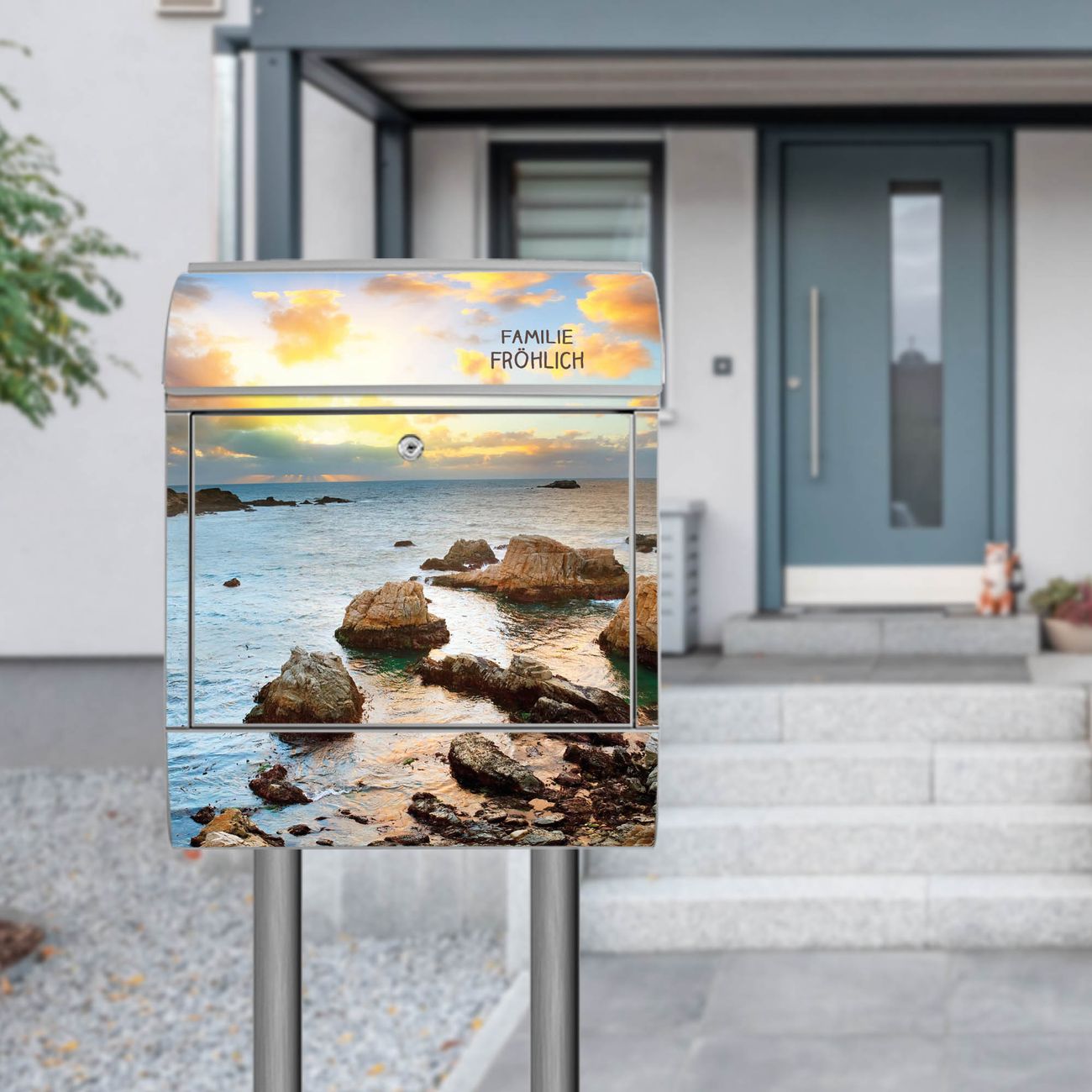 Standbriefkasten Stahl Sonnenaufgang am Meer