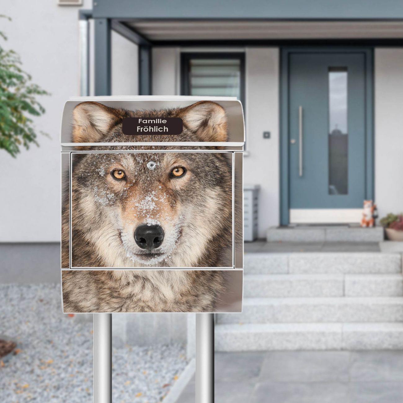 Der Vorschau-Text Familie Fröhlich wird durch Ihren persönlichen Wunschtext ersetzt. Die Schriftart und Farbe bleiben gleich wie in der Vorschau.