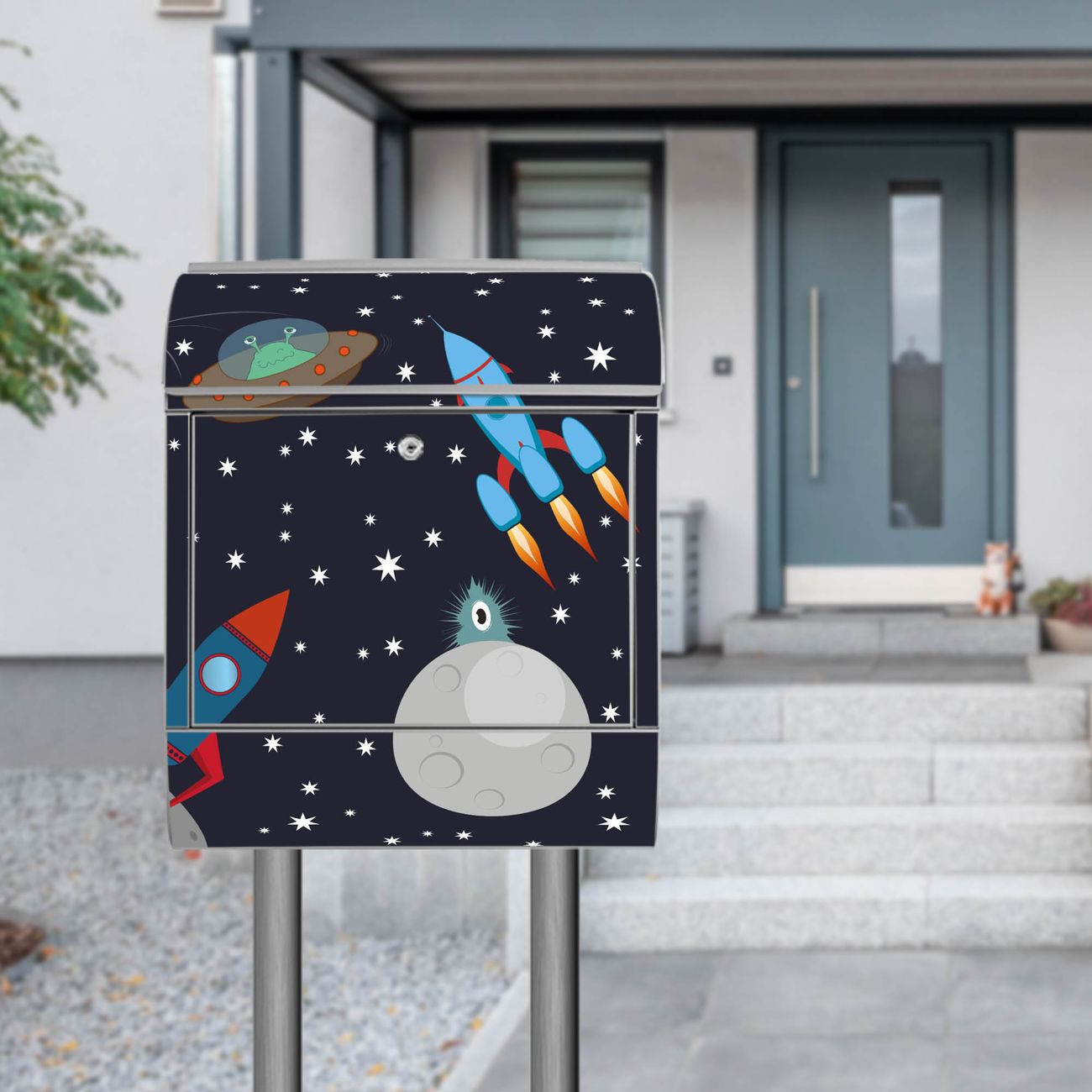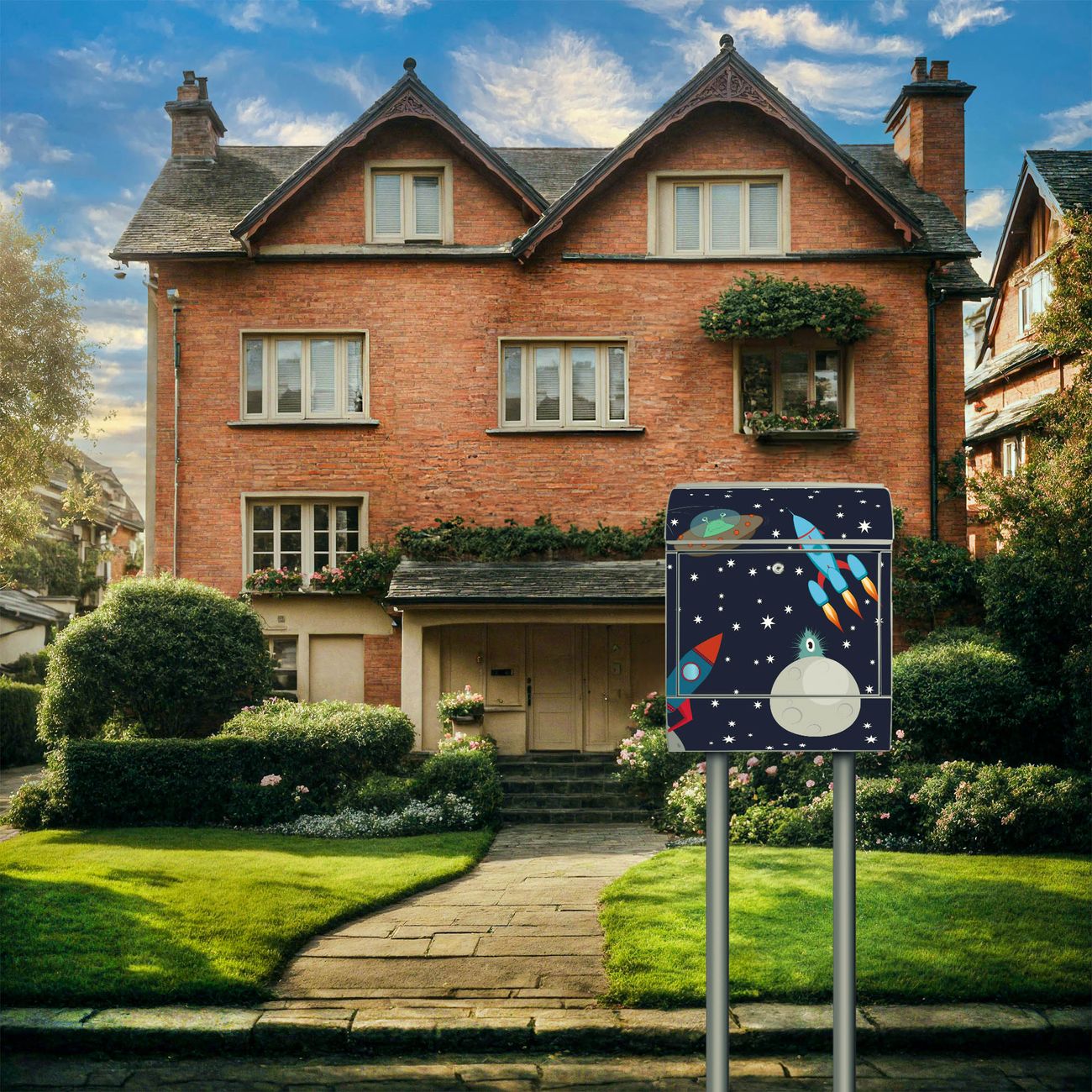 Der banjado Standbriefkasten mit Motiv Motiv Space Traffic kombiniert großzügigen Stauraum mit modernem Design. Durch das geräumige Fach finden auch große A4-Sendungen problemlos Platz. Die integrierte Zeitungsrolle sorgt dafür, dass Tageszeitungen und Magazine separat und griffbereit untergebracht sind. Der pulverbeschichtete Standfuß ist farblich passend zum Briefkasten gestaltet und sorgt für ein stimmiges Gesamtbild. Mit dem individuellen Motiv setzen Sie einen optischen Akzent, der sowohl praktisch als auch dekorativ ist.