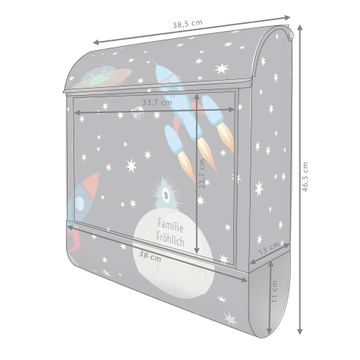 Der banjado Standbriefkasten mit Motiv Motiv Space Traffic kombiniert großzügigen Stauraum mit modernem Design. Durch das geräumige Fach finden auch große A4-Sendungen problemlos Platz. Die integrierte Zeitungsrolle sorgt dafür, dass Tageszeitungen und Magazine separat und griffbereit untergebracht sind. Der pulverbeschichtete Standfuß ist farblich passend zum Briefkasten gestaltet und sorgt für ein stimmiges Gesamtbild. Mit dem individuellen Motiv setzen Sie einen optischen Akzent, der sowohl praktisch als auch dekorativ ist.