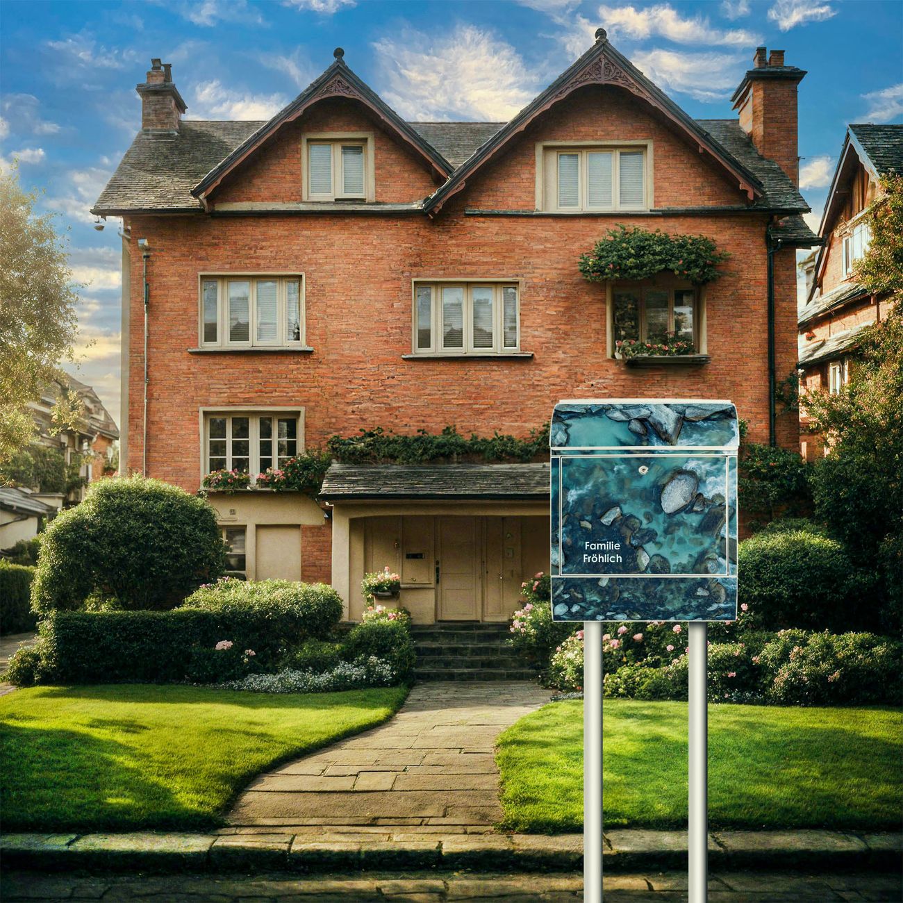 Der Standbriefkasten besteht aus pulverbeschichtetem Stahl und ist insgesamt ca. 161,5 x 47 x 16 cm groß. Das Motiv wird auf eine wetter- und UV-beständige Folie aufgebracht und mit einem robusten Schutzlaminat versiegelt. Damit bleibt die Farbbrillanz auch bei Sonne und Regen lange erhalten. Für einen sicheren Halt empfehlen wir, den Standbriefkasten mindestens 15 cm einzubetonieren. Jeder Briefkasten wird in Sachsen in einer kleinen Manufaktur von Hand veredelt - Sie erhalten ein Stück langlebige Handarbeit, das Funktionalität und Design vereint.