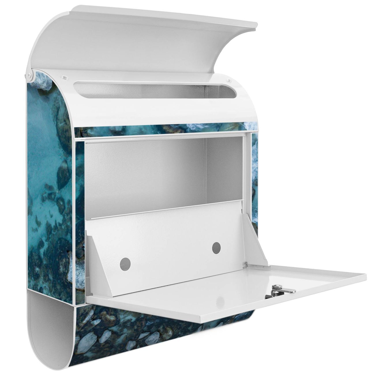 Der banjado Standbriefkasten mit Motiv Motiv Steinbucht 2 kombiniert großzügigen Stauraum mit modernem Design. Durch das geräumige Fach finden auch große A4-Sendungen problemlos Platz. Die integrierte Zeitungsrolle sorgt dafür, dass Tageszeitungen und Magazine separat und griffbereit untergebracht sind. Der pulverbeschichtete Standfuß ist farblich passend zum Briefkasten gestaltet und sorgt für ein stimmiges Gesamtbild. Mit dem individuellen Motiv setzen Sie einen optischen Akzent, der sowohl praktisch als auch dekorativ ist.