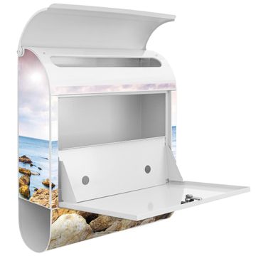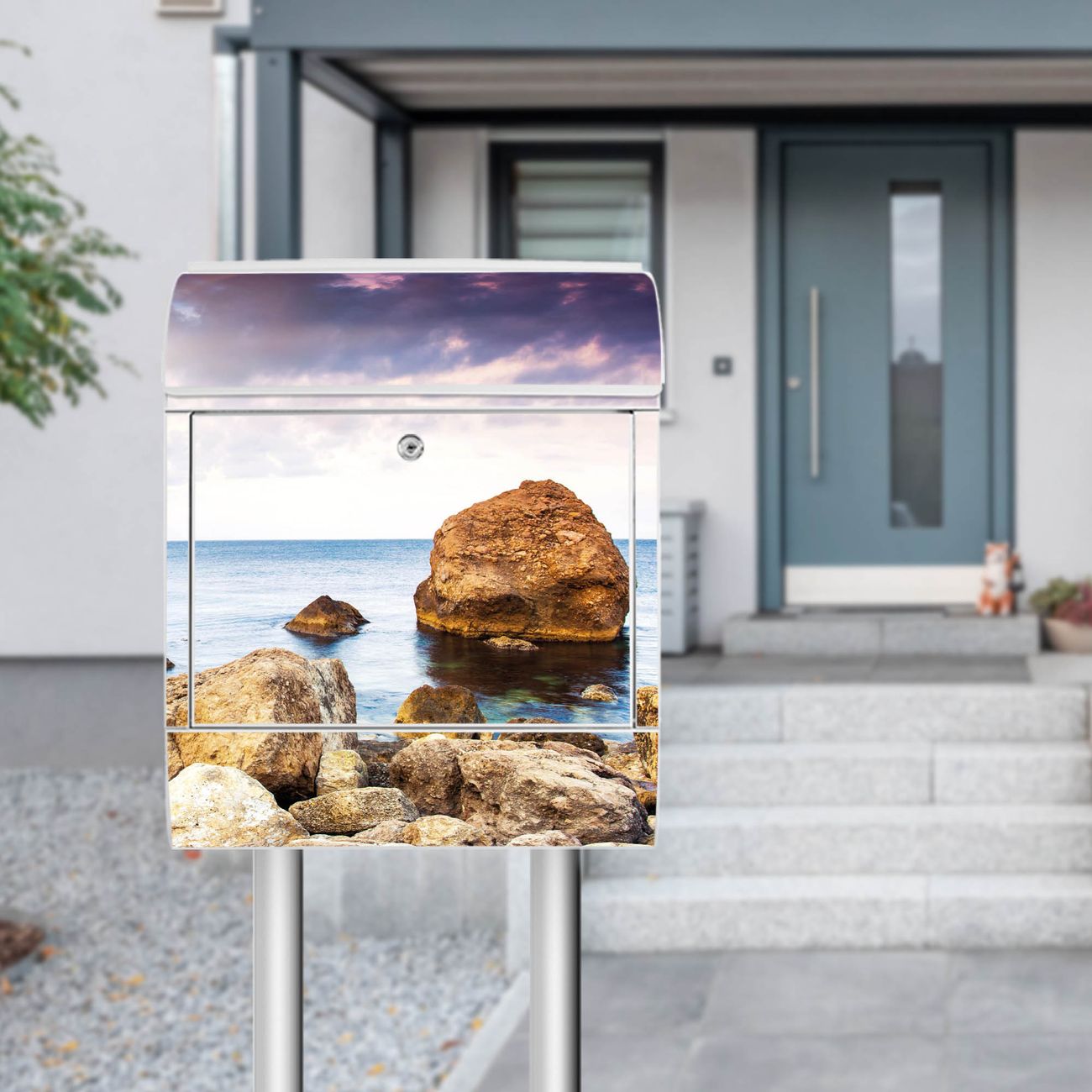 Der banjado Standbriefkasten mit Motiv Motiv Steinbucht kombiniert großzügigen Stauraum mit modernem Design. Durch das geräumige Fach finden auch große A4-Sendungen problemlos Platz. Die integrierte Zeitungsrolle sorgt dafür, dass Tageszeitungen und Magazine separat und griffbereit untergebracht sind. Der pulverbeschichtete Standfuß ist farblich passend zum Briefkasten gestaltet und sorgt für ein stimmiges Gesamtbild. Mit dem individuellen Motiv setzen Sie einen optischen Akzent, der sowohl praktisch als auch dekorativ ist.