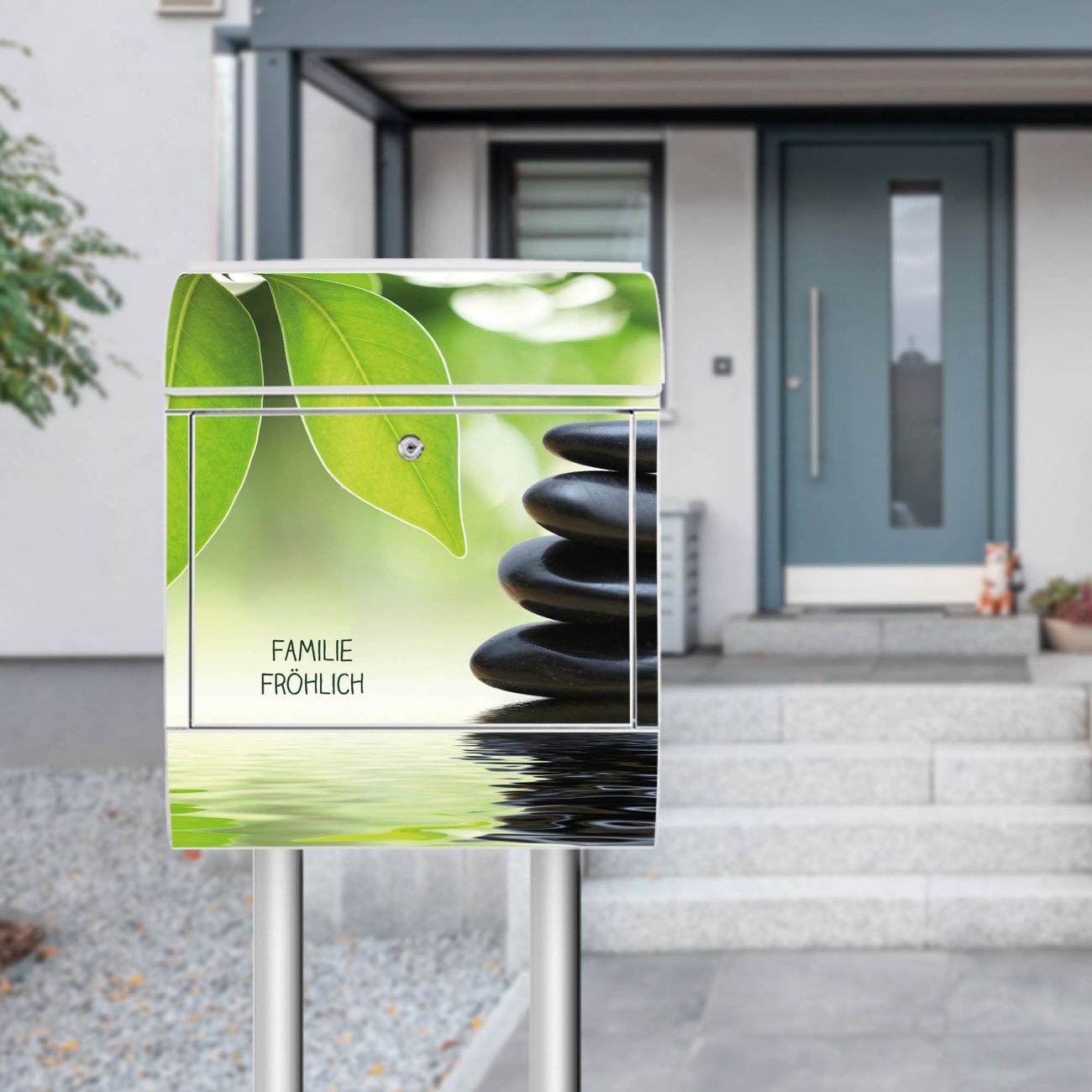 Der banjado Standbriefkasten mit Motiv Motiv Steine&Relax kombiniert großzügigen Stauraum mit modernem Design. Durch das geräumige Fach finden auch große A4-Sendungen problemlos Platz. Die integrierte Zeitungsrolle sorgt dafür, dass Tageszeitungen und Magazine separat und griffbereit untergebracht sind. Der pulverbeschichtete Standfuß ist farblich passend zum Briefkasten gestaltet und sorgt für ein stimmiges Gesamtbild. Mit dem individuellen Motiv setzen Sie einen optischen Akzent, der sowohl praktisch als auch dekorativ ist.