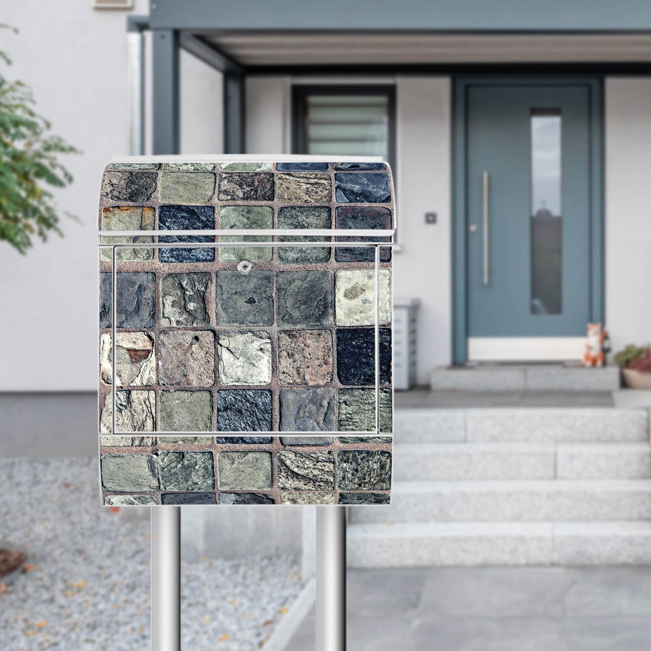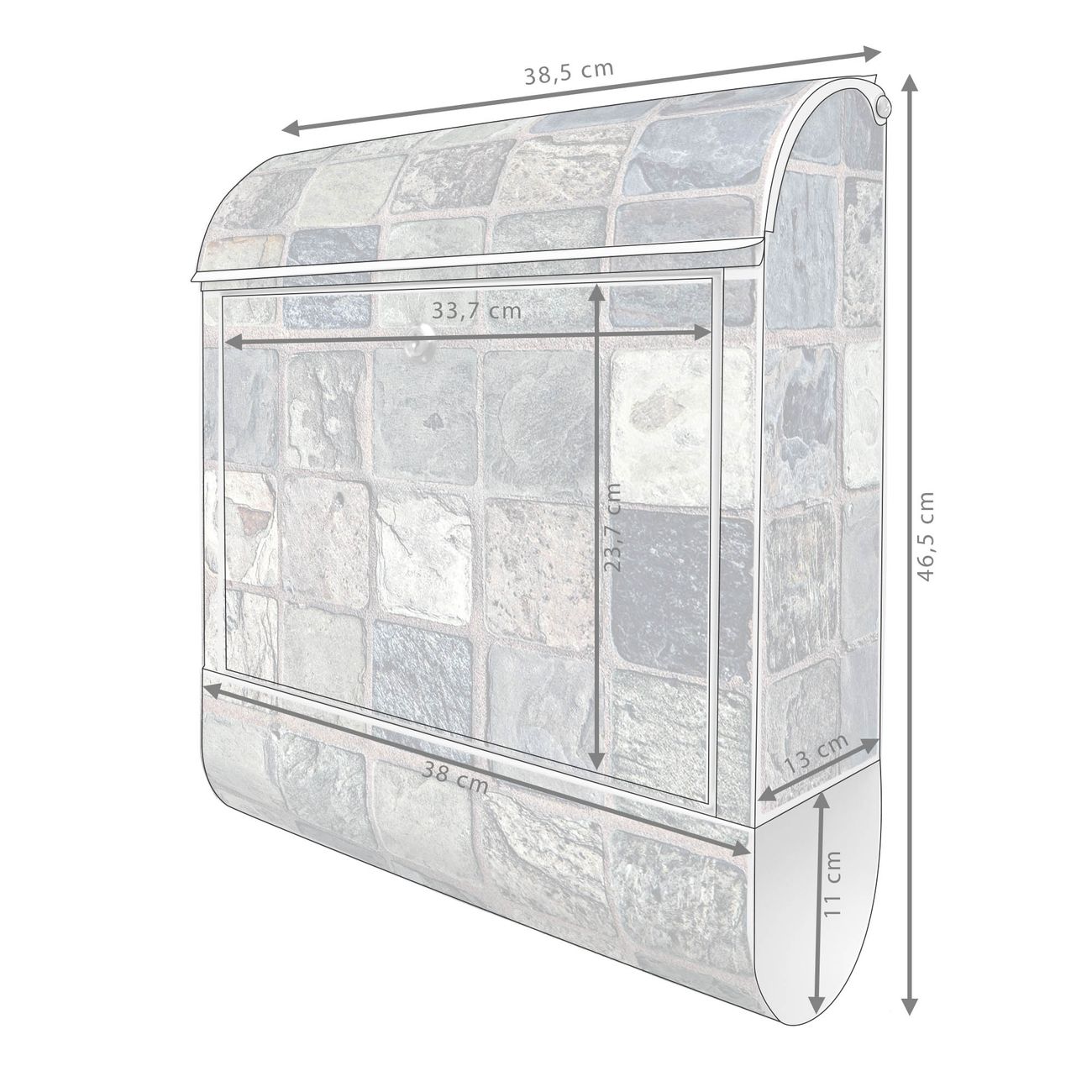 Der banjado Standbriefkasten mit Motiv Motiv Steinfliesen kombiniert großzügigen Stauraum mit modernem Design. Durch das geräumige Fach finden auch große A4-Sendungen problemlos Platz. Die integrierte Zeitungsrolle sorgt dafür, dass Tageszeitungen und Magazine separat und griffbereit untergebracht sind. Der pulverbeschichtete Standfuß ist farblich passend zum Briefkasten gestaltet und sorgt für ein stimmiges Gesamtbild. Mit dem individuellen Motiv setzen Sie einen optischen Akzent, der sowohl praktisch als auch dekorativ ist.