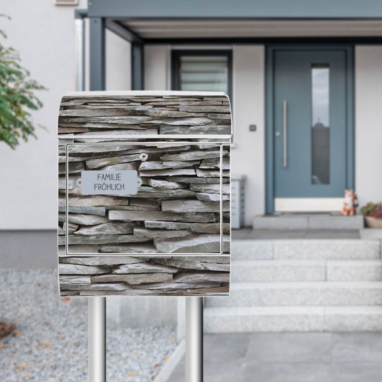 Standbriefkasten Stahl Steinwand