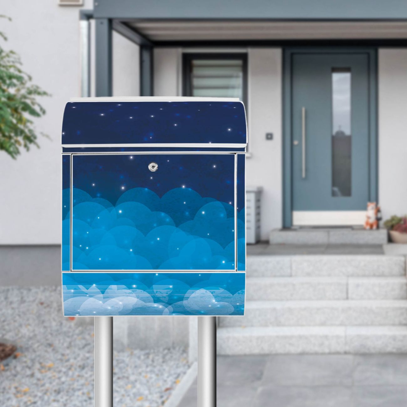 Der banjado Standbriefkasten mit Motiv Motiv Sternenhimmel 2 kombiniert großzügigen Stauraum mit modernem Design. Durch das geräumige Fach finden auch große A4-Sendungen problemlos Platz. Die integrierte Zeitungsrolle sorgt dafür, dass Tageszeitungen und Magazine separat und griffbereit untergebracht sind. Der pulverbeschichtete Standfuß ist farblich passend zum Briefkasten gestaltet und sorgt für ein stimmiges Gesamtbild. Mit dem individuellen Motiv setzen Sie einen optischen Akzent, der sowohl praktisch als auch dekorativ ist.