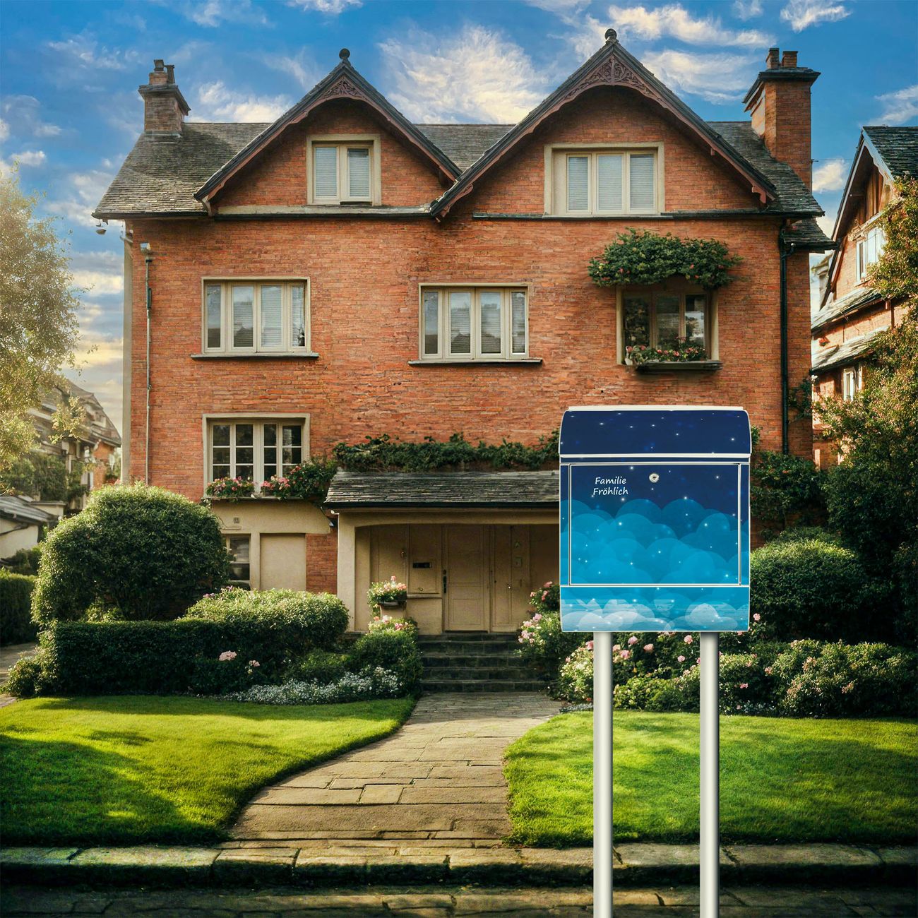 Der Vorschau-Text Familie Fröhlich wird durch Ihren persönlichen Wunschtext ersetzt. Die Schriftart und Farbe bleiben gleich wie in der Vorschau.