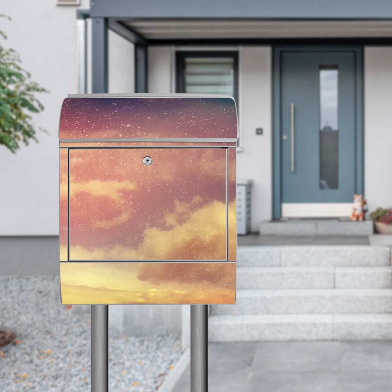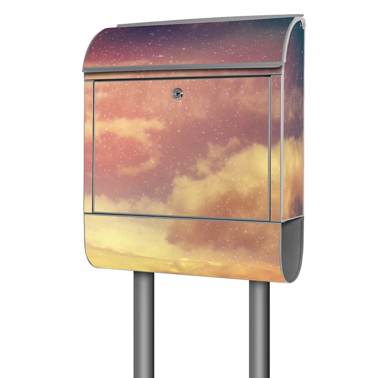 Der banjado Standbriefkasten mit Motiv Motiv Sternenhimmel kombiniert großzügigen Stauraum mit modernem Design. Durch das geräumige Fach finden auch große A4-Sendungen problemlos Platz. Die integrierte Zeitungsrolle sorgt dafür, dass Tageszeitungen und Magazine separat und griffbereit untergebracht sind. Der pulverbeschichtete Standfuß ist farblich passend zum Briefkasten gestaltet und sorgt für ein stimmiges Gesamtbild. Mit dem individuellen Motiv setzen Sie einen optischen Akzent, der sowohl praktisch als auch dekorativ ist.