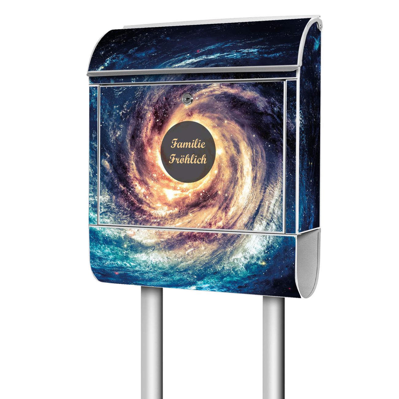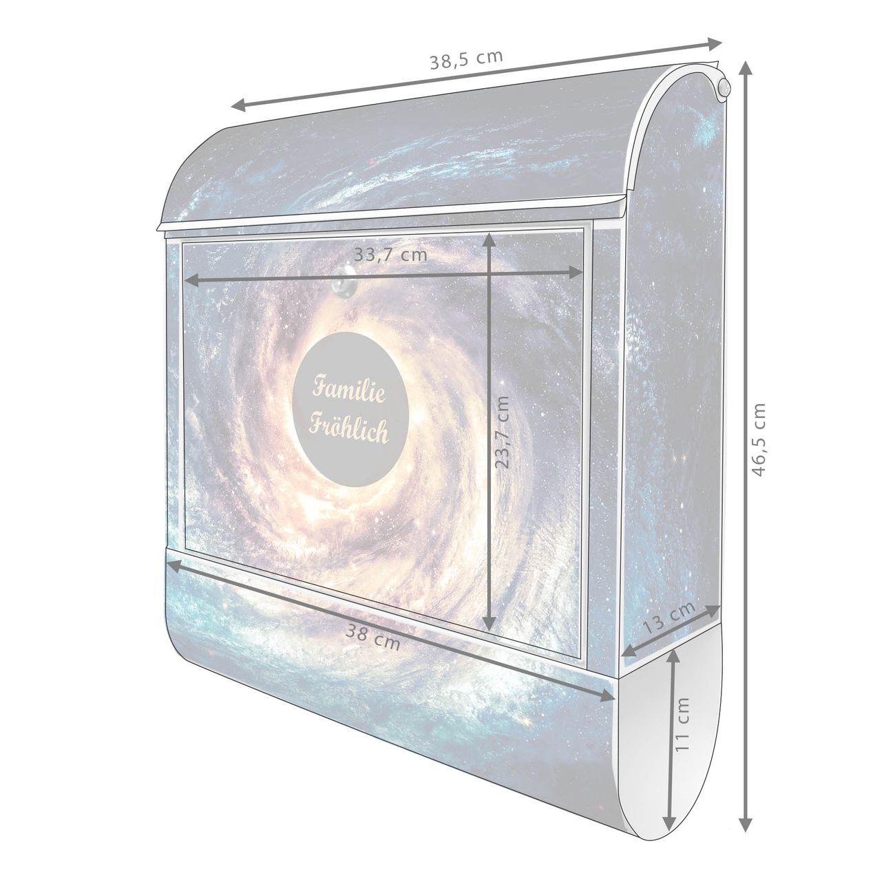 Der banjado Standbriefkasten mit Motiv Motiv Sternenwirbel kombiniert großzügigen Stauraum mit modernem Design. Durch das geräumige Fach finden auch große A4-Sendungen problemlos Platz. Die integrierte Zeitungsrolle sorgt dafür, dass Tageszeitungen und Magazine separat und griffbereit untergebracht sind. Der pulverbeschichtete Standfuß ist farblich passend zum Briefkasten gestaltet und sorgt für ein stimmiges Gesamtbild. Mit dem individuellen Motiv setzen Sie einen optischen Akzent, der sowohl praktisch als auch dekorativ ist.