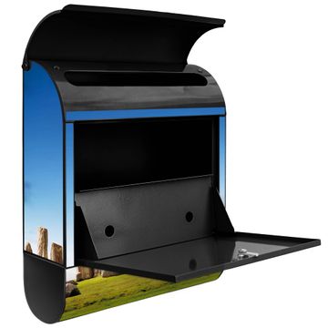Der banjado Standbriefkasten mit Motiv Motiv Stonehenge kombiniert großzügigen Stauraum mit modernem Design. Durch das geräumige Fach finden auch große A4-Sendungen problemlos Platz. Die integrierte Zeitungsrolle sorgt dafür, dass Tageszeitungen und Magazine separat und griffbereit untergebracht sind. Der pulverbeschichtete Standfuß ist farblich passend zum Briefkasten gestaltet und sorgt für ein stimmiges Gesamtbild. Mit dem individuellen Motiv setzen Sie einen optischen Akzent, der sowohl praktisch als auch dekorativ ist.