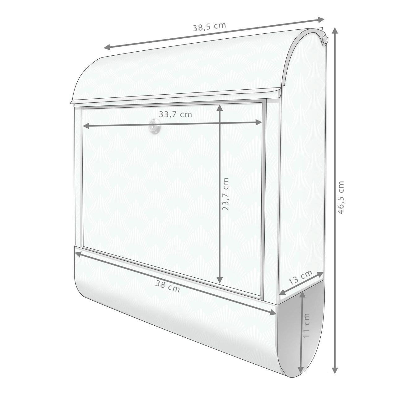 Der banjado Standbriefkasten mit Motiv Motiv Strahlen Mint kombiniert großzügigen Stauraum mit modernem Design. Durch das geräumige Fach finden auch große A4-Sendungen problemlos Platz. Die integrierte Zeitungsrolle sorgt dafür, dass Tageszeitungen und Magazine separat und griffbereit untergebracht sind. Der pulverbeschichtete Standfuß ist farblich passend zum Briefkasten gestaltet und sorgt für ein stimmiges Gesamtbild. Mit dem individuellen Motiv setzen Sie einen optischen Akzent, der sowohl praktisch als auch dekorativ ist.