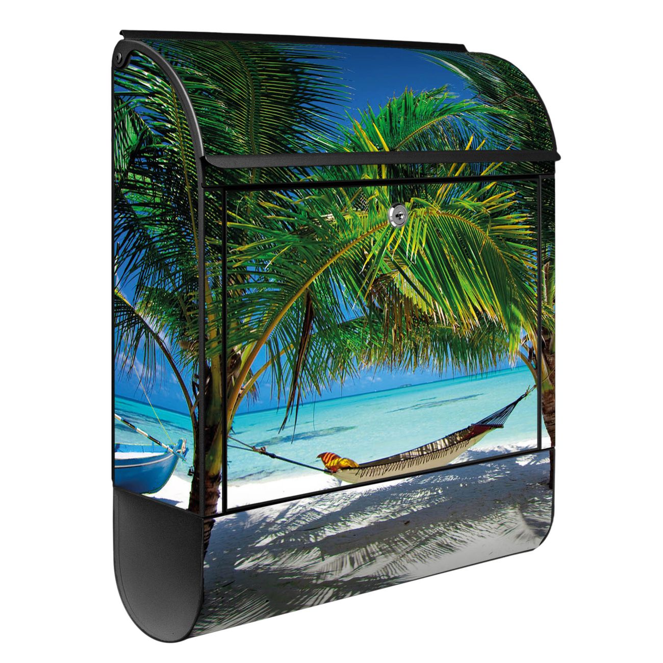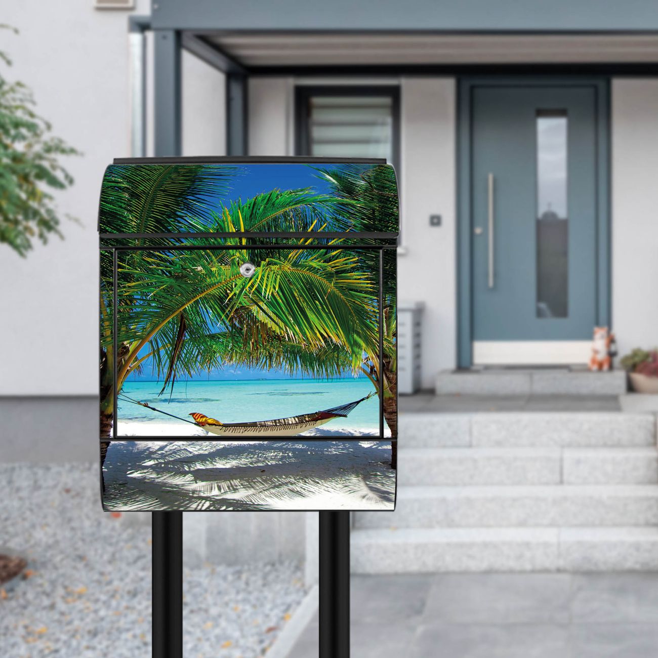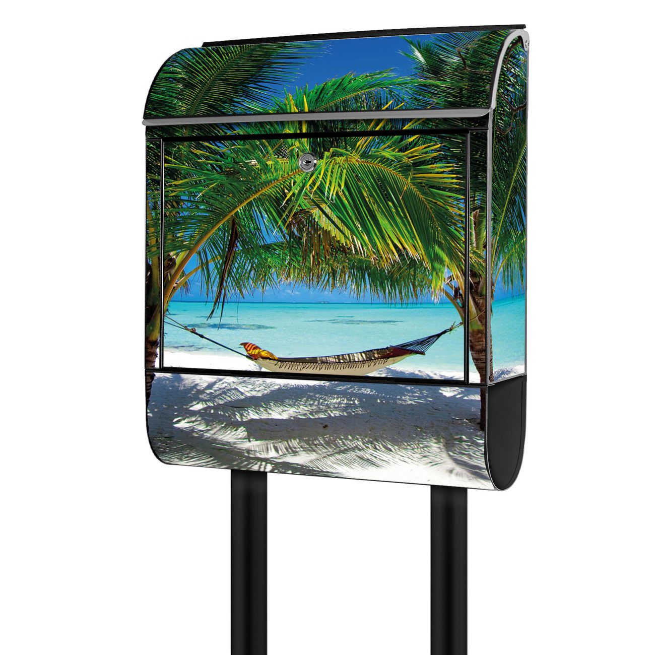 Der banjado Standbriefkasten mit Motiv Motiv Strand kombiniert großzügigen Stauraum mit modernem Design. Durch das geräumige Fach finden auch große A4-Sendungen problemlos Platz. Die integrierte Zeitungsrolle sorgt dafür, dass Tageszeitungen und Magazine separat und griffbereit untergebracht sind. Der pulverbeschichtete Standfuß ist farblich passend zum Briefkasten gestaltet und sorgt für ein stimmiges Gesamtbild. Mit dem individuellen Motiv setzen Sie einen optischen Akzent, der sowohl praktisch als auch dekorativ ist.