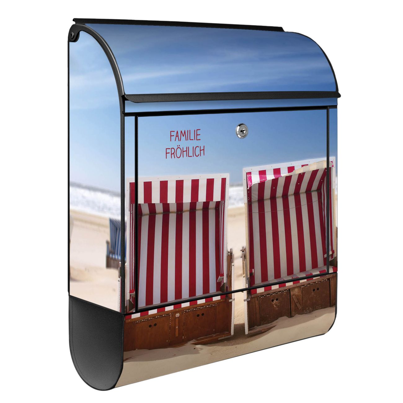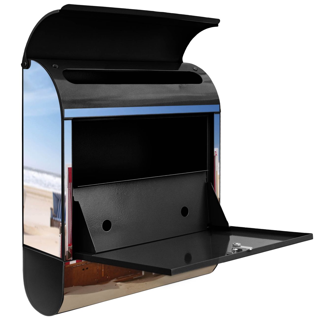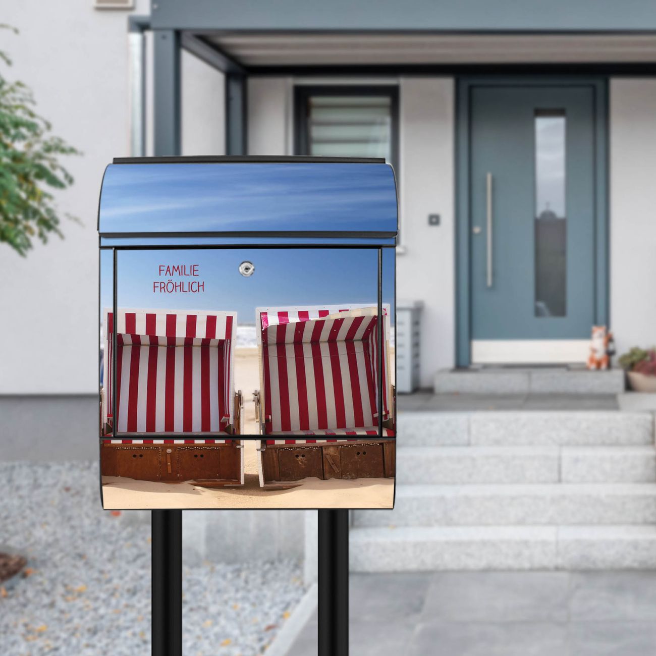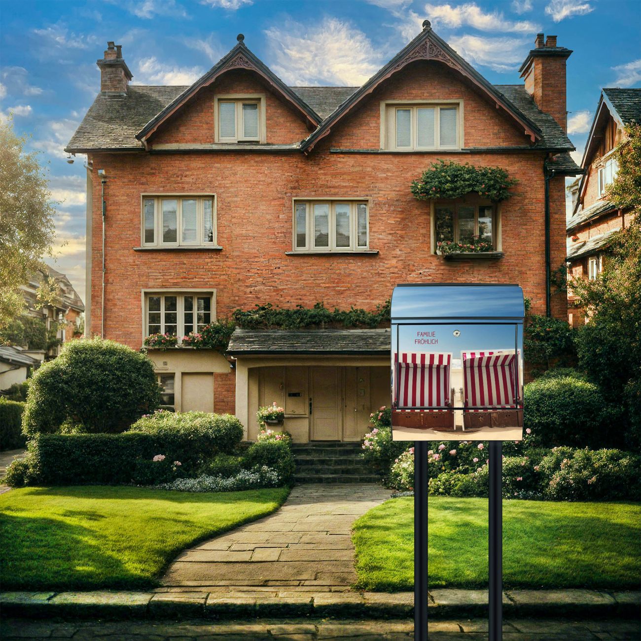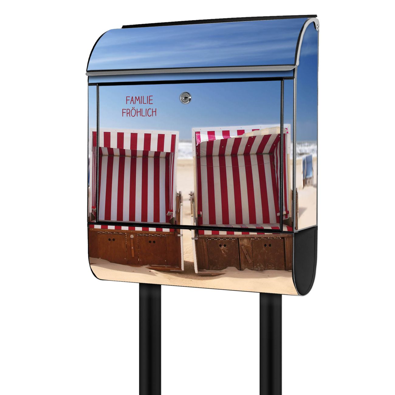 Der banjado Standbriefkasten mit Motiv Motiv Strandkörbe kombiniert großzügigen Stauraum mit modernem Design. Durch das geräumige Fach finden auch große A4-Sendungen problemlos Platz. Die integrierte Zeitungsrolle sorgt dafür, dass Tageszeitungen und Magazine separat und griffbereit untergebracht sind. Der pulverbeschichtete Standfuß ist farblich passend zum Briefkasten gestaltet und sorgt für ein stimmiges Gesamtbild. Mit dem individuellen Motiv setzen Sie einen optischen Akzent, der sowohl praktisch als auch dekorativ ist.