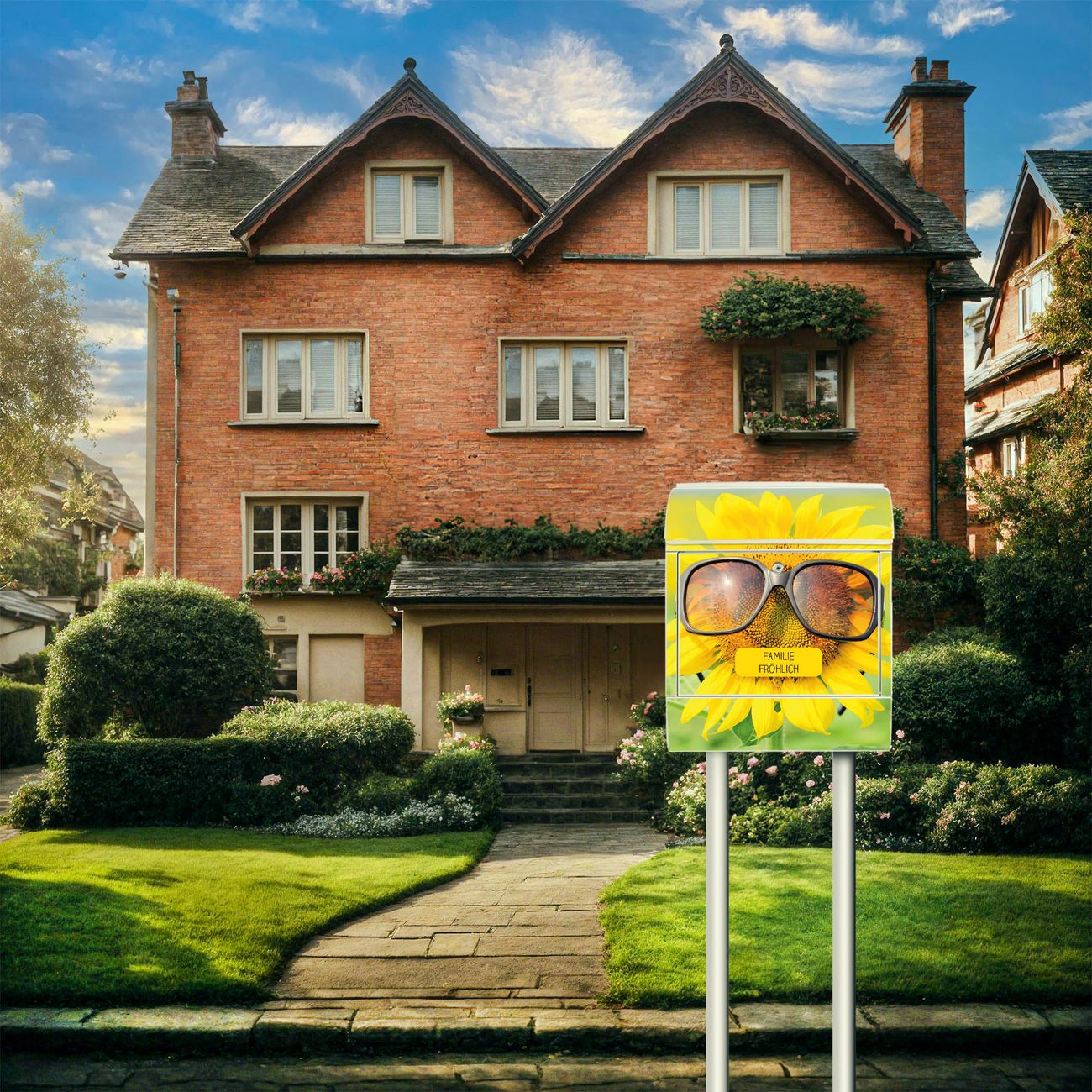 Der Standbriefkasten besteht aus pulverbeschichtetem Stahl und ist insgesamt ca. 161,5 x 47 x 16 cm groß. Das Motiv wird auf eine wetter- und UV-beständige Folie aufgebracht und mit einem robusten Schutzlaminat versiegelt. Damit bleibt die Farbbrillanz auch bei Sonne und Regen lange erhalten. Für einen sicheren Halt empfehlen wir, den Standbriefkasten mindestens 15 cm einzubetonieren. Jeder Briefkasten wird in Sachsen in einer kleinen Manufaktur von Hand veredelt - Sie erhalten ein Stück langlebige Handarbeit, das Funktionalität und Design vereint.