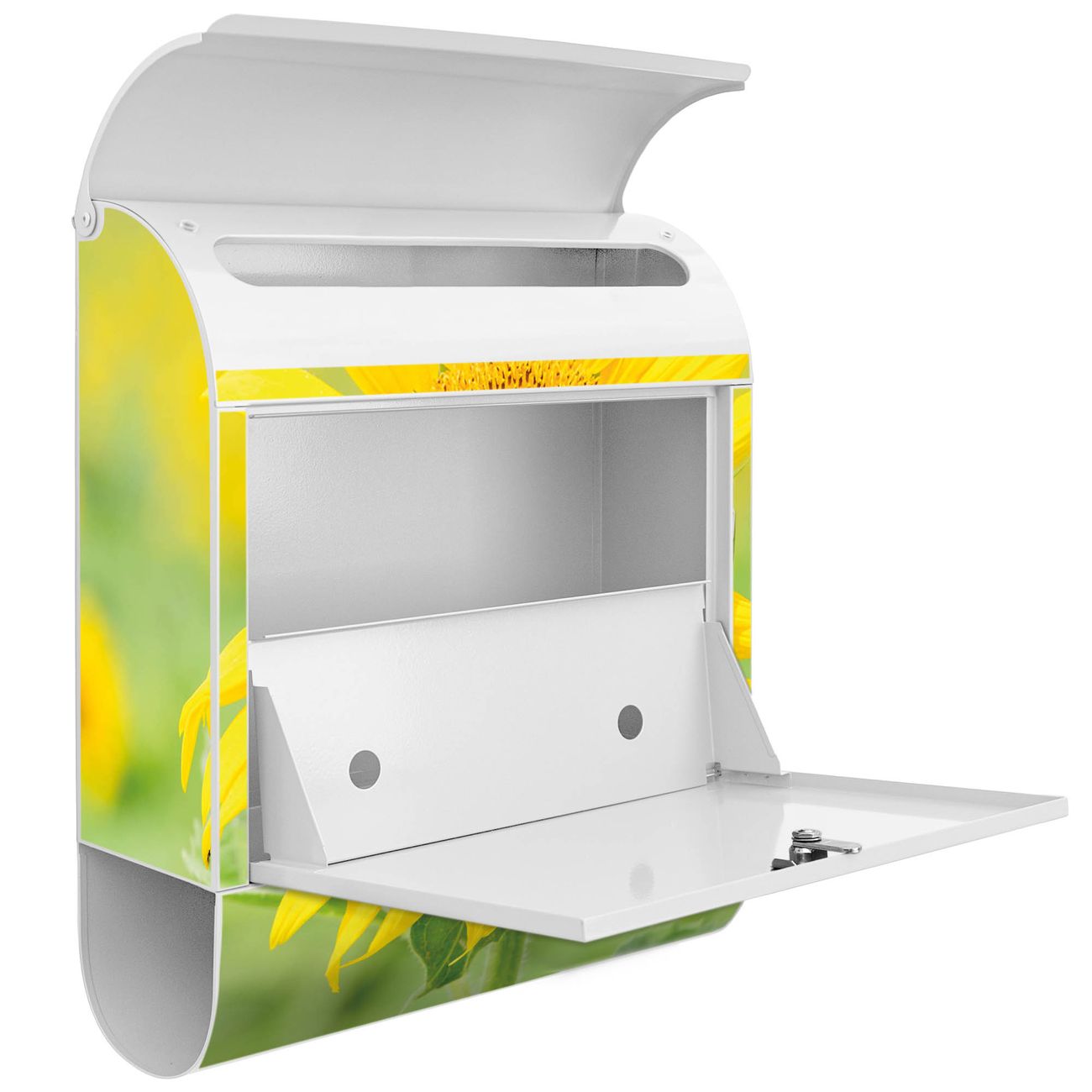 Der banjado Standbriefkasten mit Motiv Motiv Sunny kombiniert großzügigen Stauraum mit modernem Design. Durch das geräumige Fach finden auch große A4-Sendungen problemlos Platz. Die integrierte Zeitungsrolle sorgt dafür, dass Tageszeitungen und Magazine separat und griffbereit untergebracht sind. Der pulverbeschichtete Standfuß ist farblich passend zum Briefkasten gestaltet und sorgt für ein stimmiges Gesamtbild. Mit dem individuellen Motiv setzen Sie einen optischen Akzent, der sowohl praktisch als auch dekorativ ist.
