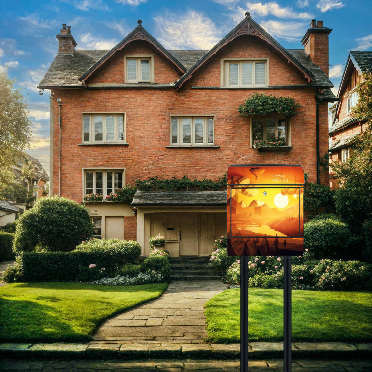 Der banjado Standbriefkasten mit Motiv Motiv Sunset kombiniert großzügigen Stauraum mit modernem Design. Durch das geräumige Fach finden auch große A4-Sendungen problemlos Platz. Die integrierte Zeitungsrolle sorgt dafür, dass Tageszeitungen und Magazine separat und griffbereit untergebracht sind. Der pulverbeschichtete Standfuß ist farblich passend zum Briefkasten gestaltet und sorgt für ein stimmiges Gesamtbild. Mit dem individuellen Motiv setzen Sie einen optischen Akzent, der sowohl praktisch als auch dekorativ ist.