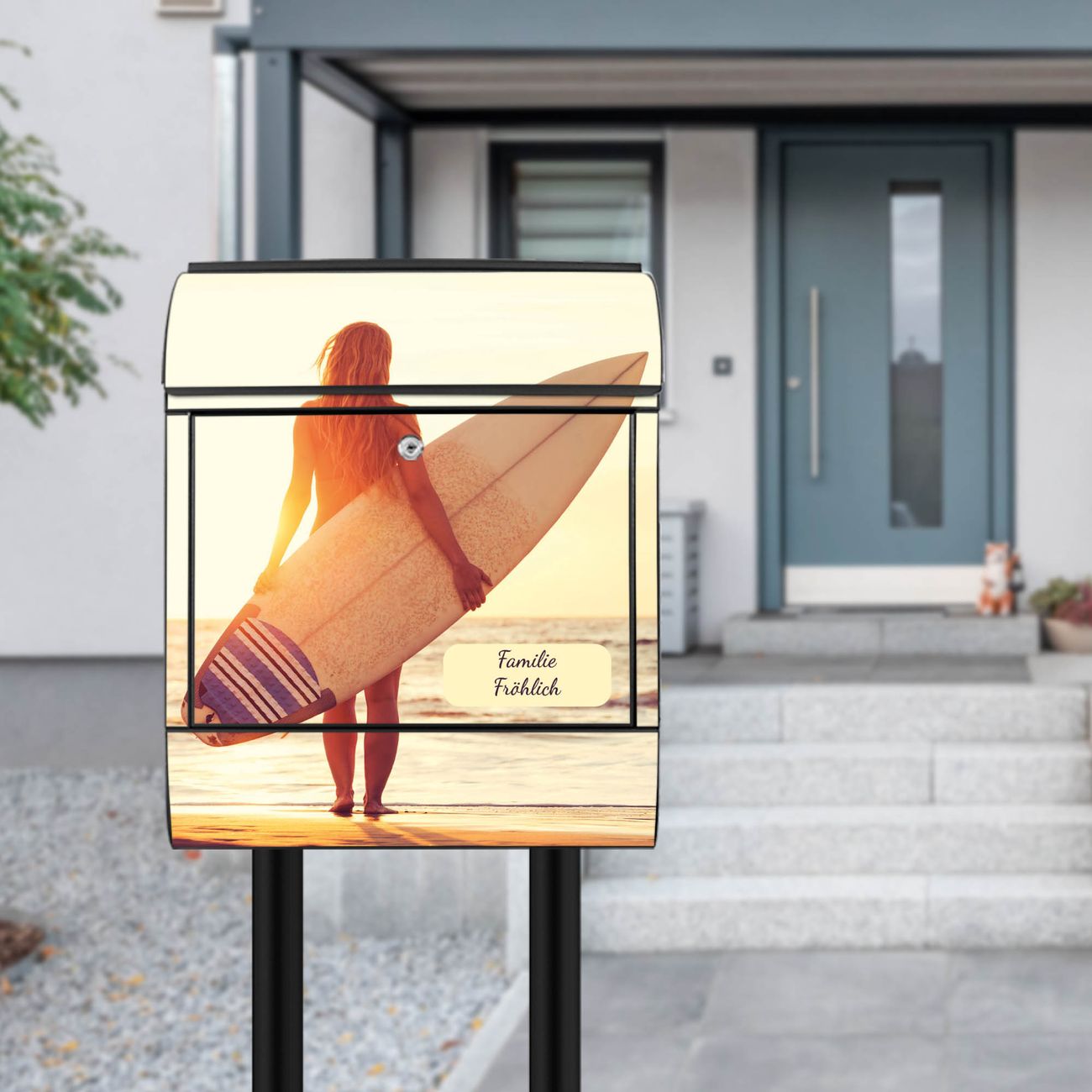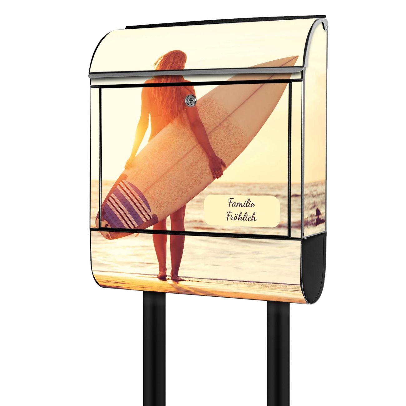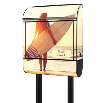 Der banjado Standbriefkasten mit Motiv Motiv Surfer Girl kombiniert großzügigen Stauraum mit modernem Design. Durch das geräumige Fach finden auch große A4-Sendungen problemlos Platz. Die integrierte Zeitungsrolle sorgt dafür, dass Tageszeitungen und Magazine separat und griffbereit untergebracht sind. Der pulverbeschichtete Standfuß ist farblich passend zum Briefkasten gestaltet und sorgt für ein stimmiges Gesamtbild. Mit dem individuellen Motiv setzen Sie einen optischen Akzent, der sowohl praktisch als auch dekorativ ist.