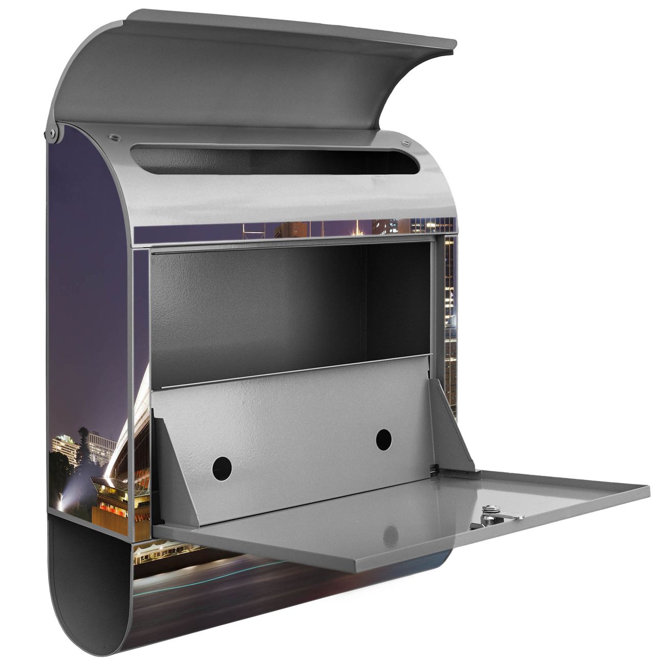 Der banjado Standbriefkasten mit Motiv Motiv Sydney kombiniert großzügigen Stauraum mit modernem Design. Durch das geräumige Fach finden auch große A4-Sendungen problemlos Platz. Die integrierte Zeitungsrolle sorgt dafür, dass Tageszeitungen und Magazine separat und griffbereit untergebracht sind. Der pulverbeschichtete Standfuß ist farblich passend zum Briefkasten gestaltet und sorgt für ein stimmiges Gesamtbild. Mit dem individuellen Motiv setzen Sie einen optischen Akzent, der sowohl praktisch als auch dekorativ ist.