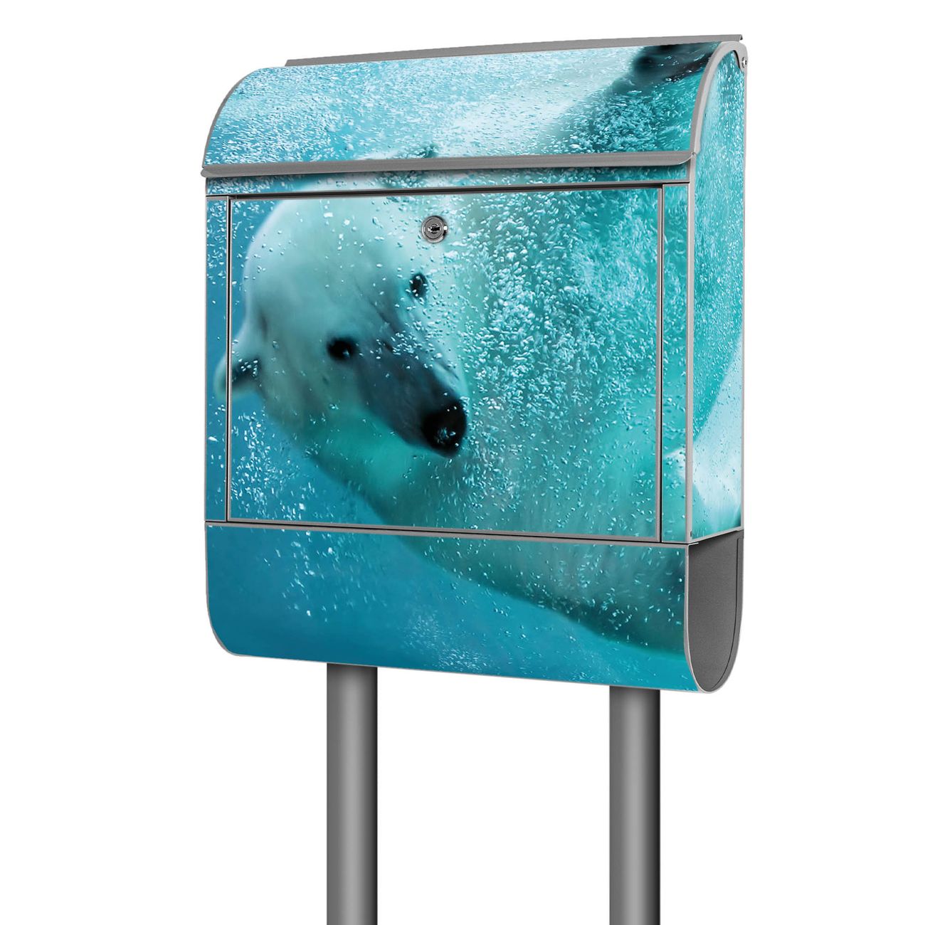 Der banjado Standbriefkasten mit Motiv Motiv Tauchender Eisbär kombiniert großzügigen Stauraum mit modernem Design. Durch das geräumige Fach finden auch große A4-Sendungen problemlos Platz. Die integrierte Zeitungsrolle sorgt dafür, dass Tageszeitungen und Magazine separat und griffbereit untergebracht sind. Der pulverbeschichtete Standfuß ist farblich passend zum Briefkasten gestaltet und sorgt für ein stimmiges Gesamtbild. Mit dem individuellen Motiv setzen Sie einen optischen Akzent, der sowohl praktisch als auch dekorativ ist.