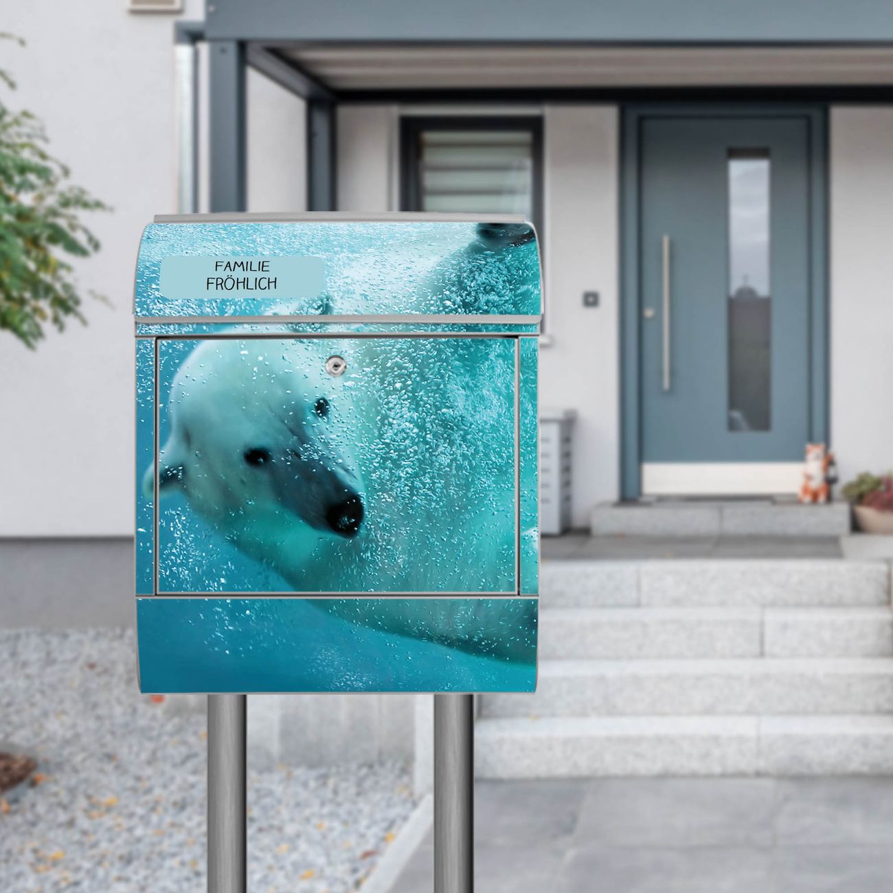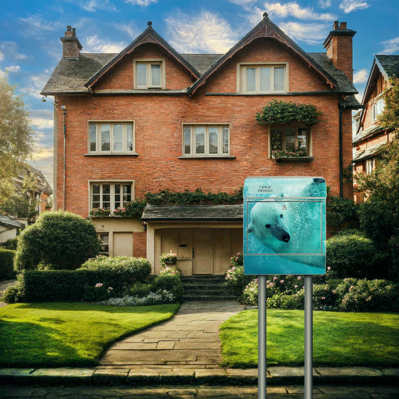Der banjado Standbriefkasten mit Motiv Motiv Tauchender Eisbär kombiniert großzügigen Stauraum mit modernem Design. Durch das geräumige Fach finden auch große A4-Sendungen problemlos Platz. Die integrierte Zeitungsrolle sorgt dafür, dass Tageszeitungen und Magazine separat und griffbereit untergebracht sind. Der pulverbeschichtete Standfuß ist farblich passend zum Briefkasten gestaltet und sorgt für ein stimmiges Gesamtbild. Mit dem individuellen Motiv setzen Sie einen optischen Akzent, der sowohl praktisch als auch dekorativ ist.