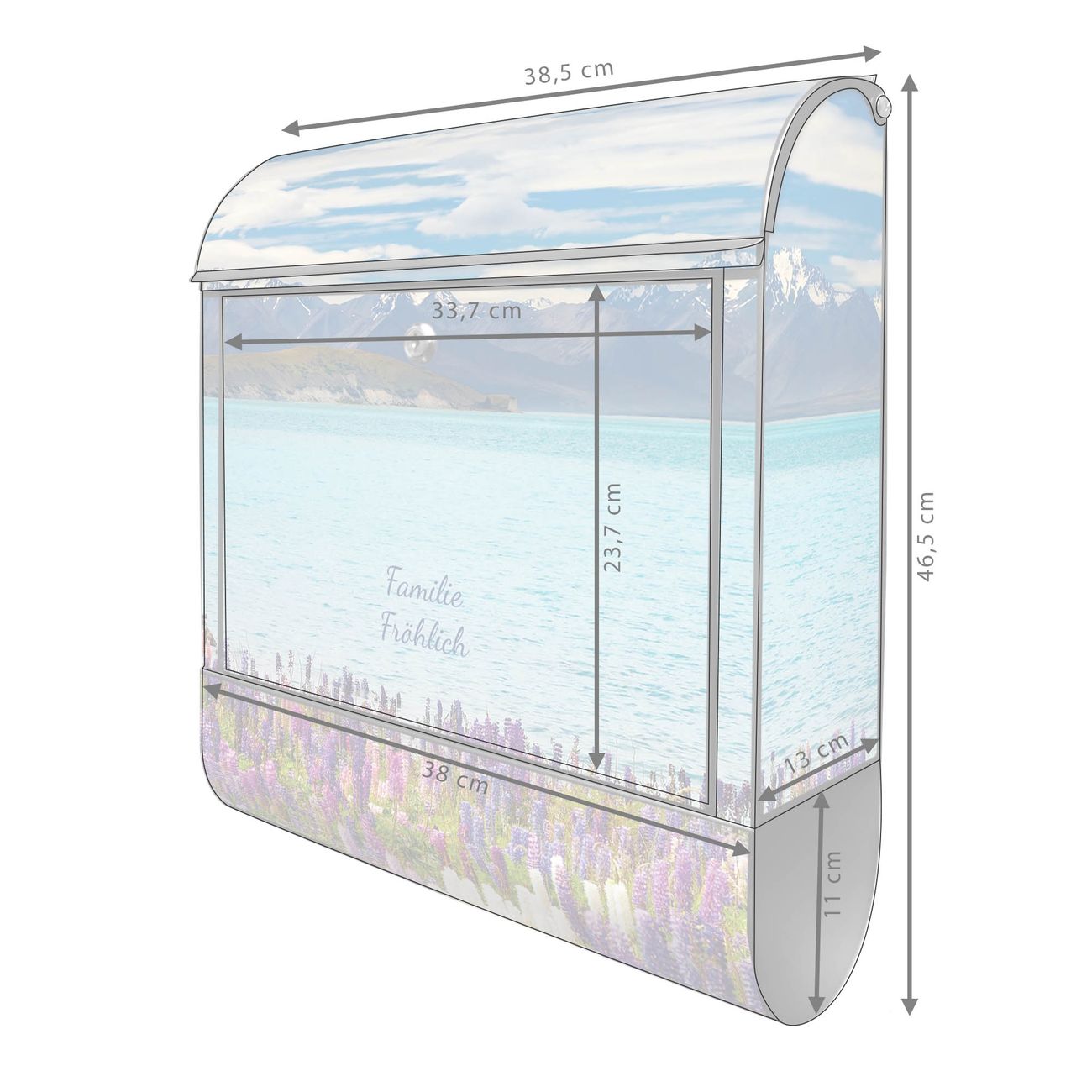 Der banjado Standbriefkasten mit Motiv Motiv Tekapo See kombiniert großzügigen Stauraum mit modernem Design. Durch das geräumige Fach finden auch große A4-Sendungen problemlos Platz. Die integrierte Zeitungsrolle sorgt dafür, dass Tageszeitungen und Magazine separat und griffbereit untergebracht sind. Der pulverbeschichtete Standfuß ist farblich passend zum Briefkasten gestaltet und sorgt für ein stimmiges Gesamtbild. Mit dem individuellen Motiv setzen Sie einen optischen Akzent, der sowohl praktisch als auch dekorativ ist.