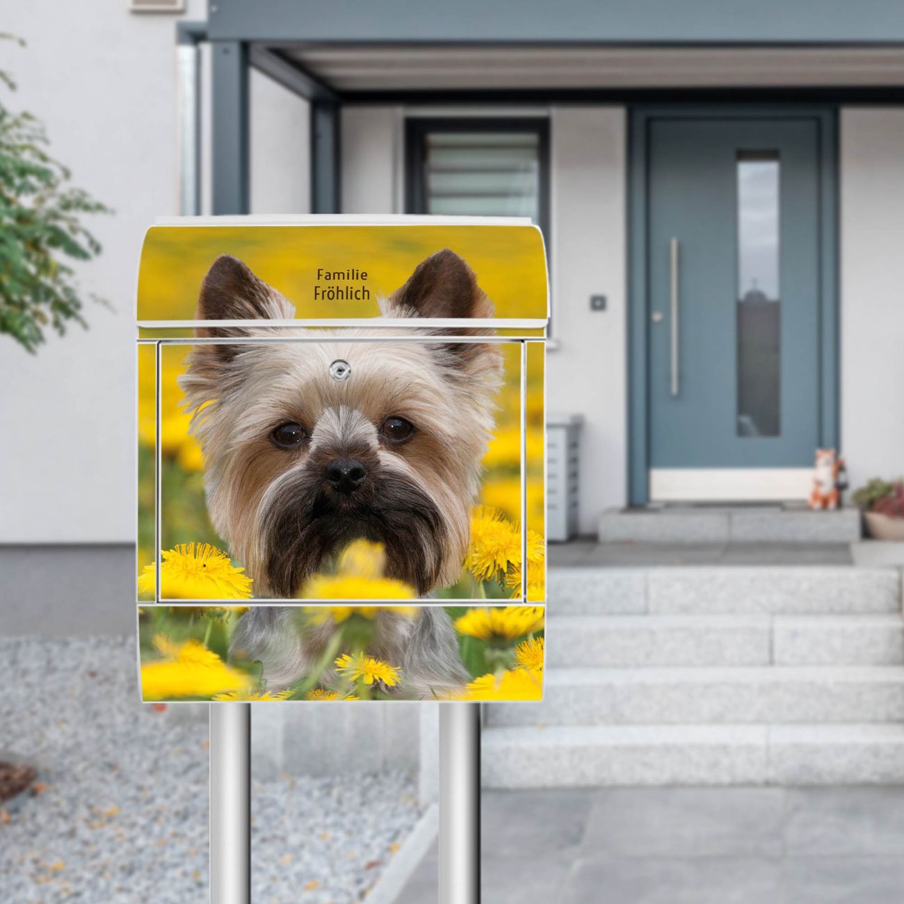 Der Vorschau-Text Familie Fröhlich wird durch Ihren persönlichen Wunschtext ersetzt. Die Schriftart und Farbe bleiben gleich wie in der Vorschau.