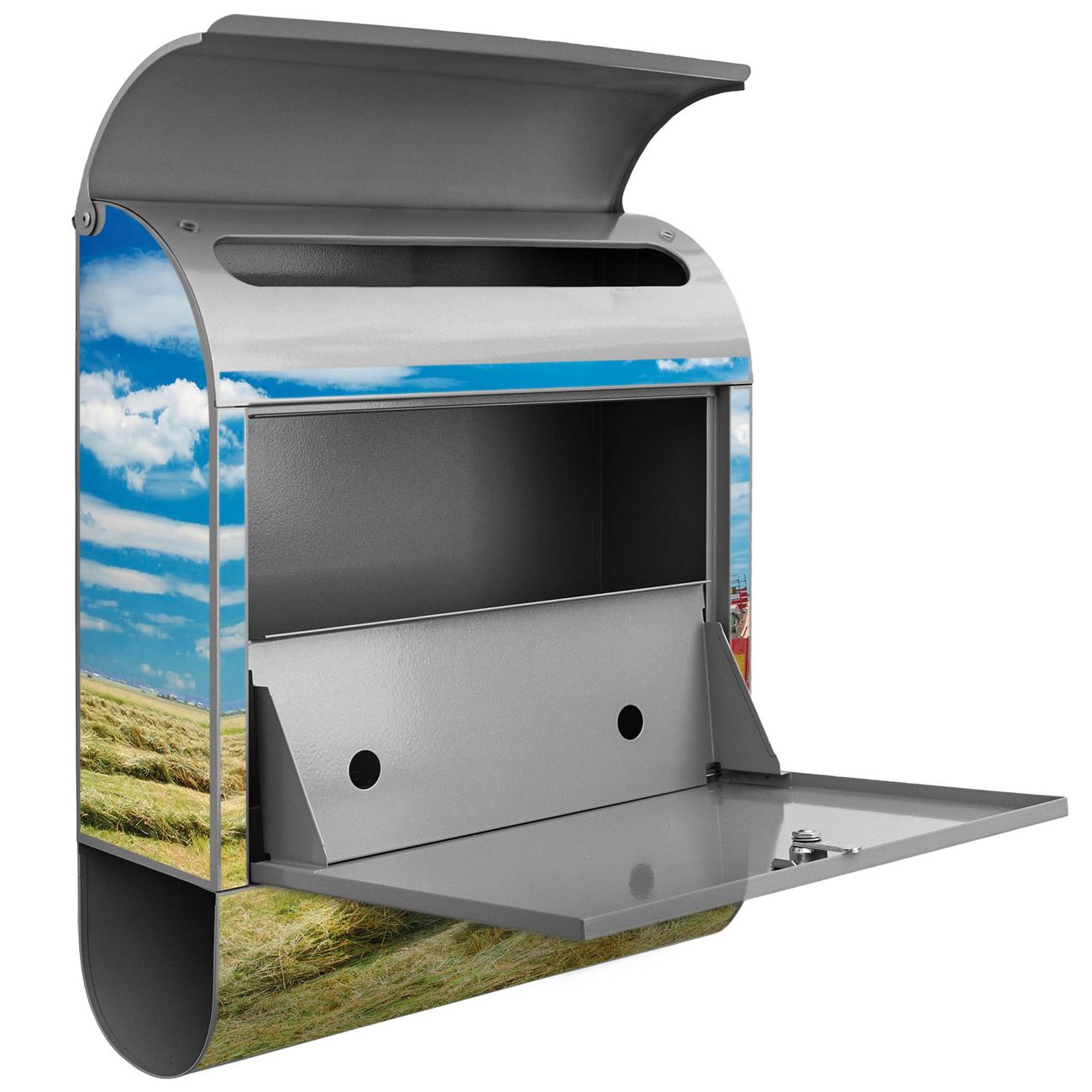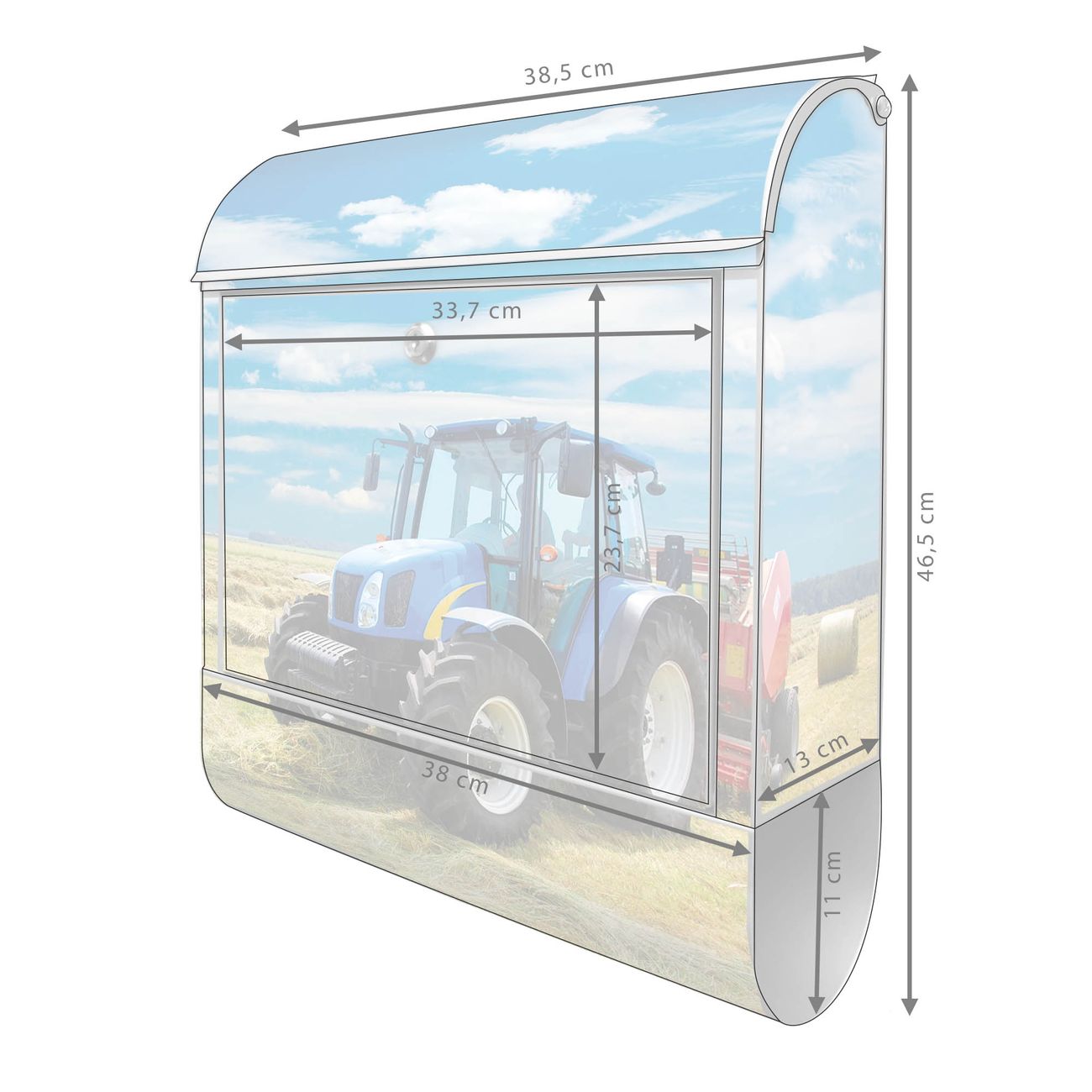 Der banjado Standbriefkasten mit Motiv Motiv Traktor kombiniert großzügigen Stauraum mit modernem Design. Durch das geräumige Fach finden auch große A4-Sendungen problemlos Platz. Die integrierte Zeitungsrolle sorgt dafür, dass Tageszeitungen und Magazine separat und griffbereit untergebracht sind. Der pulverbeschichtete Standfuß ist farblich passend zum Briefkasten gestaltet und sorgt für ein stimmiges Gesamtbild. Mit dem individuellen Motiv setzen Sie einen optischen Akzent, der sowohl praktisch als auch dekorativ ist.