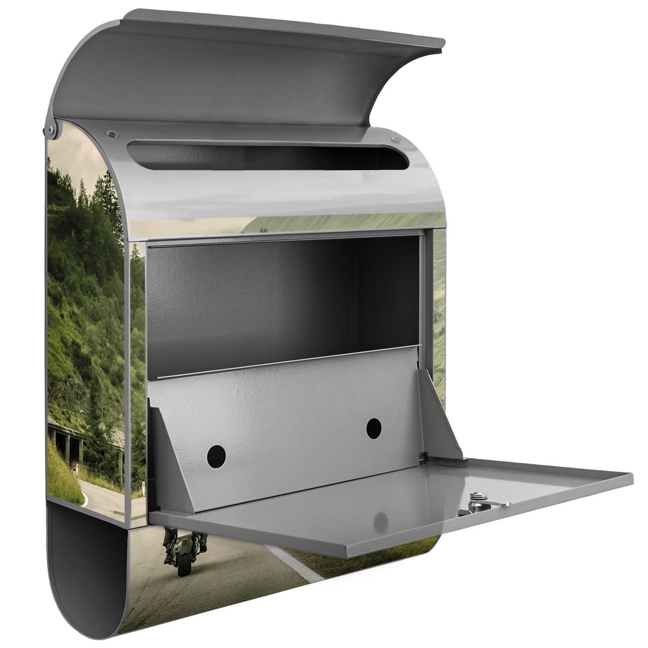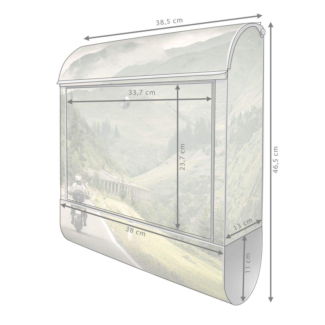 Der banjado Standbriefkasten mit Motiv Motiv Transalp kombiniert großzügigen Stauraum mit modernem Design. Durch das geräumige Fach finden auch große A4-Sendungen problemlos Platz. Die integrierte Zeitungsrolle sorgt dafür, dass Tageszeitungen und Magazine separat und griffbereit untergebracht sind. Der pulverbeschichtete Standfuß ist farblich passend zum Briefkasten gestaltet und sorgt für ein stimmiges Gesamtbild. Mit dem individuellen Motiv setzen Sie einen optischen Akzent, der sowohl praktisch als auch dekorativ ist.