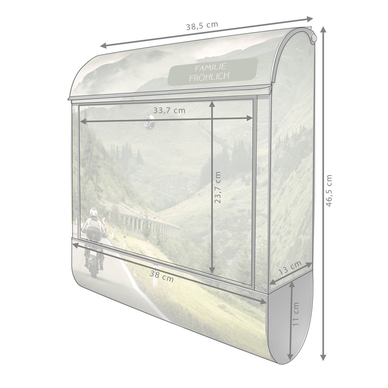 Der banjado Standbriefkasten mit Motiv Motiv Transalp kombiniert großzügigen Stauraum mit modernem Design. Durch das geräumige Fach finden auch große A4-Sendungen problemlos Platz. Die integrierte Zeitungsrolle sorgt dafür, dass Tageszeitungen und Magazine separat und griffbereit untergebracht sind. Der pulverbeschichtete Standfuß ist farblich passend zum Briefkasten gestaltet und sorgt für ein stimmiges Gesamtbild. Mit dem individuellen Motiv setzen Sie einen optischen Akzent, der sowohl praktisch als auch dekorativ ist.
