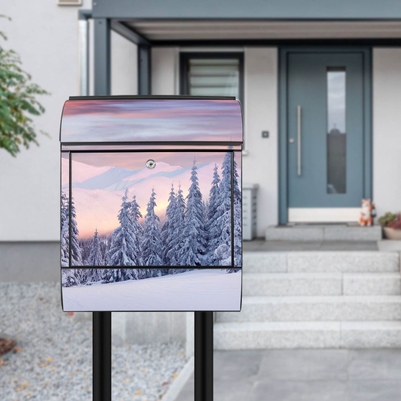 Standbriefkasten Stahl Verschneite Berge