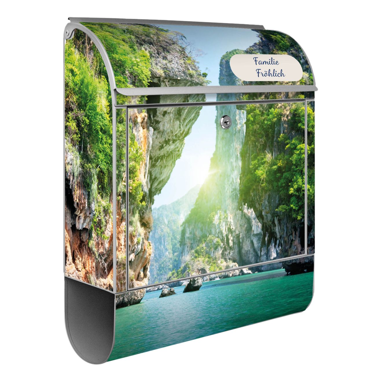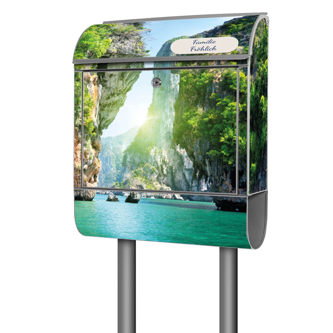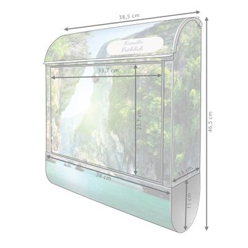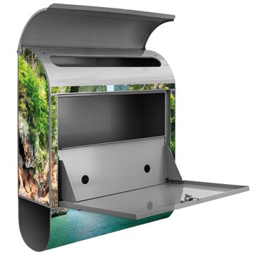 Der banjado Standbriefkasten mit Motiv Motiv Versteckte Bucht kombiniert großzügigen Stauraum mit modernem Design. Durch das geräumige Fach finden auch große A4-Sendungen problemlos Platz. Die integrierte Zeitungsrolle sorgt dafür, dass Tageszeitungen und Magazine separat und griffbereit untergebracht sind. Der pulverbeschichtete Standfuß ist farblich passend zum Briefkasten gestaltet und sorgt für ein stimmiges Gesamtbild. Mit dem individuellen Motiv setzen Sie einen optischen Akzent, der sowohl praktisch als auch dekorativ ist.