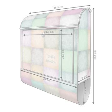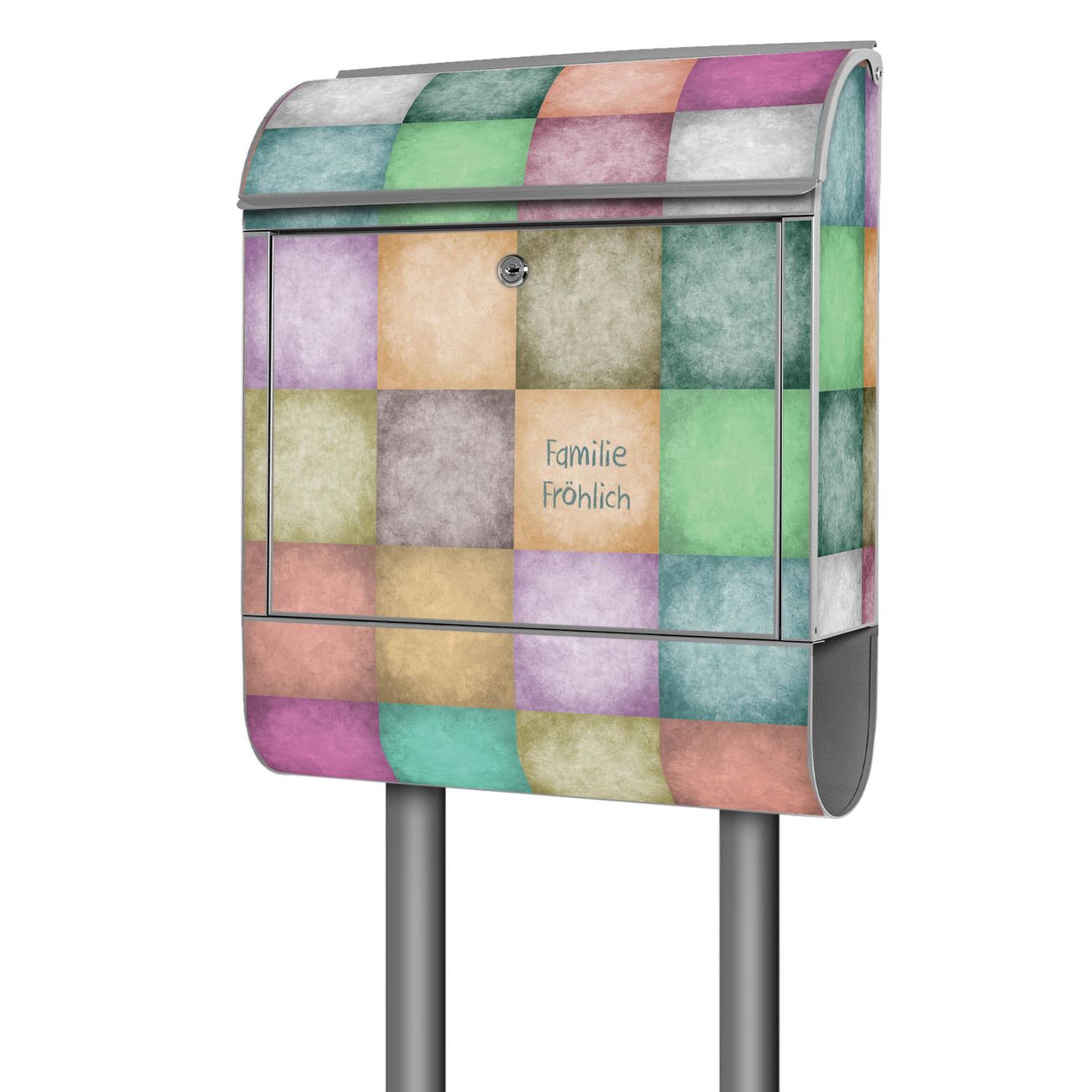 Der banjado Standbriefkasten mit Motiv Motiv Verwaschene Quadrate kombiniert großzügigen Stauraum mit modernem Design. Durch das geräumige Fach finden auch große A4-Sendungen problemlos Platz. Die integrierte Zeitungsrolle sorgt dafür, dass Tageszeitungen und Magazine separat und griffbereit untergebracht sind. Der pulverbeschichtete Standfuß ist farblich passend zum Briefkasten gestaltet und sorgt für ein stimmiges Gesamtbild. Mit dem individuellen Motiv setzen Sie einen optischen Akzent, der sowohl praktisch als auch dekorativ ist.