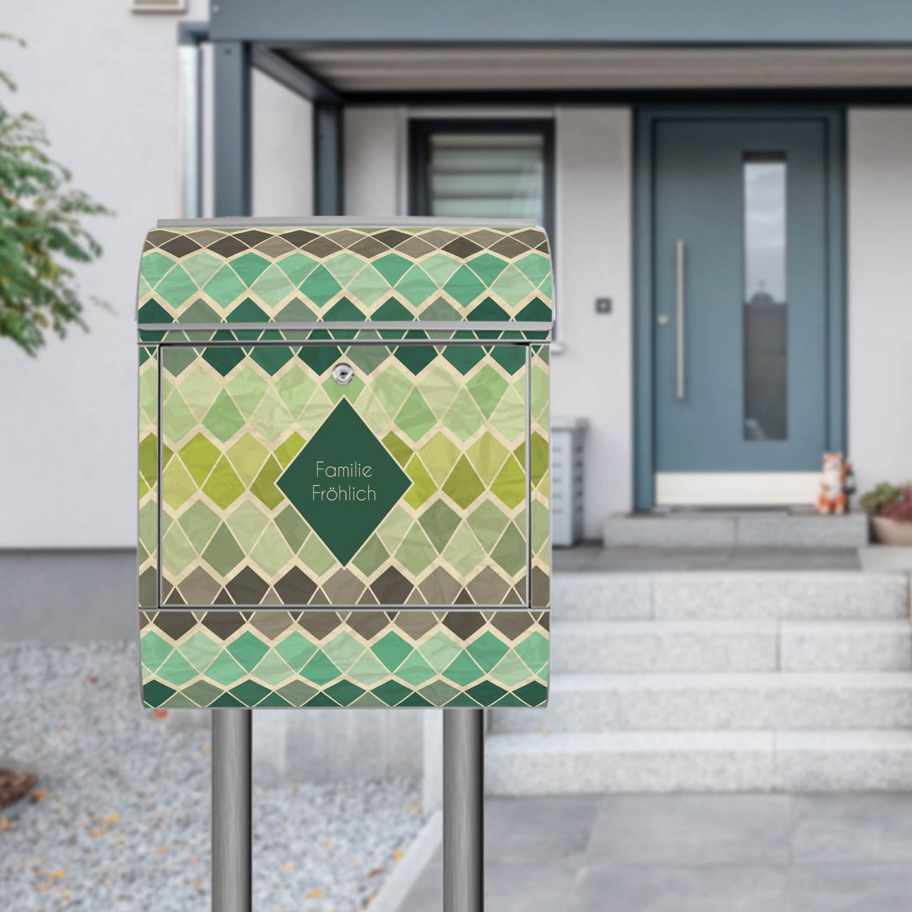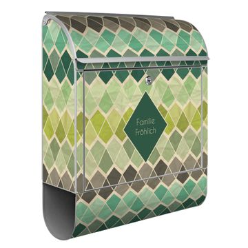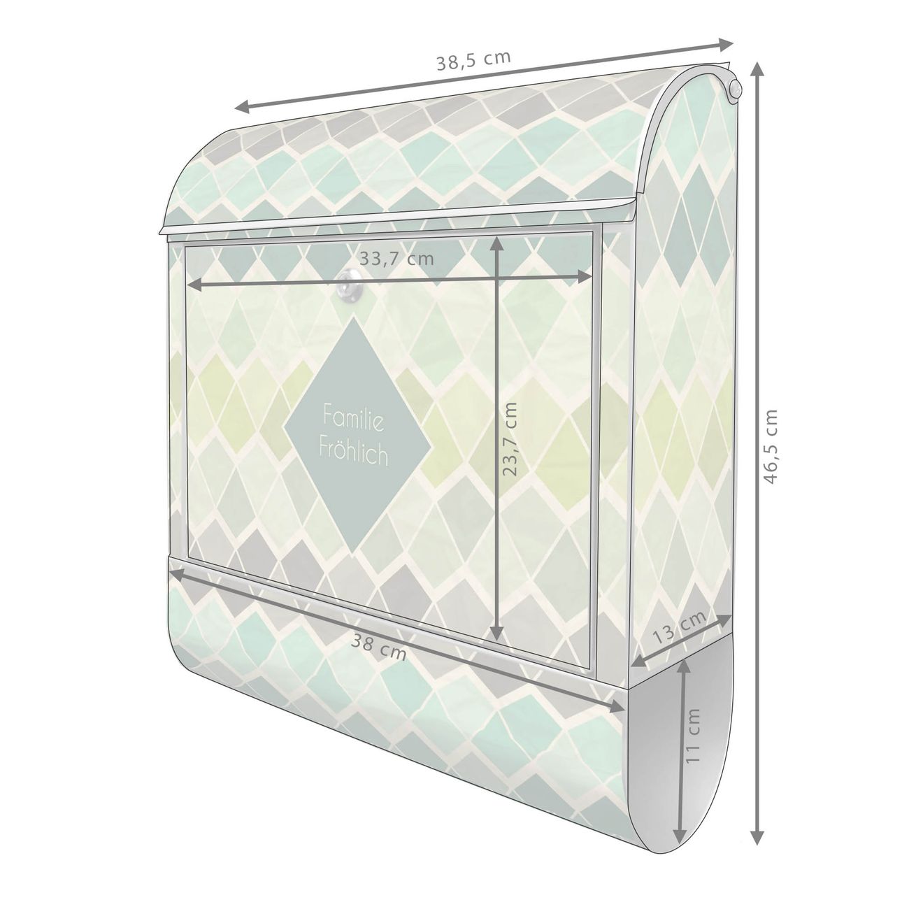 Der banjado Standbriefkasten mit Motiv Motiv Vier Farben Grün kombiniert großzügigen Stauraum mit modernem Design. Durch das geräumige Fach finden auch große A4-Sendungen problemlos Platz. Die integrierte Zeitungsrolle sorgt dafür, dass Tageszeitungen und Magazine separat und griffbereit untergebracht sind. Der pulverbeschichtete Standfuß ist farblich passend zum Briefkasten gestaltet und sorgt für ein stimmiges Gesamtbild. Mit dem individuellen Motiv setzen Sie einen optischen Akzent, der sowohl praktisch als auch dekorativ ist.