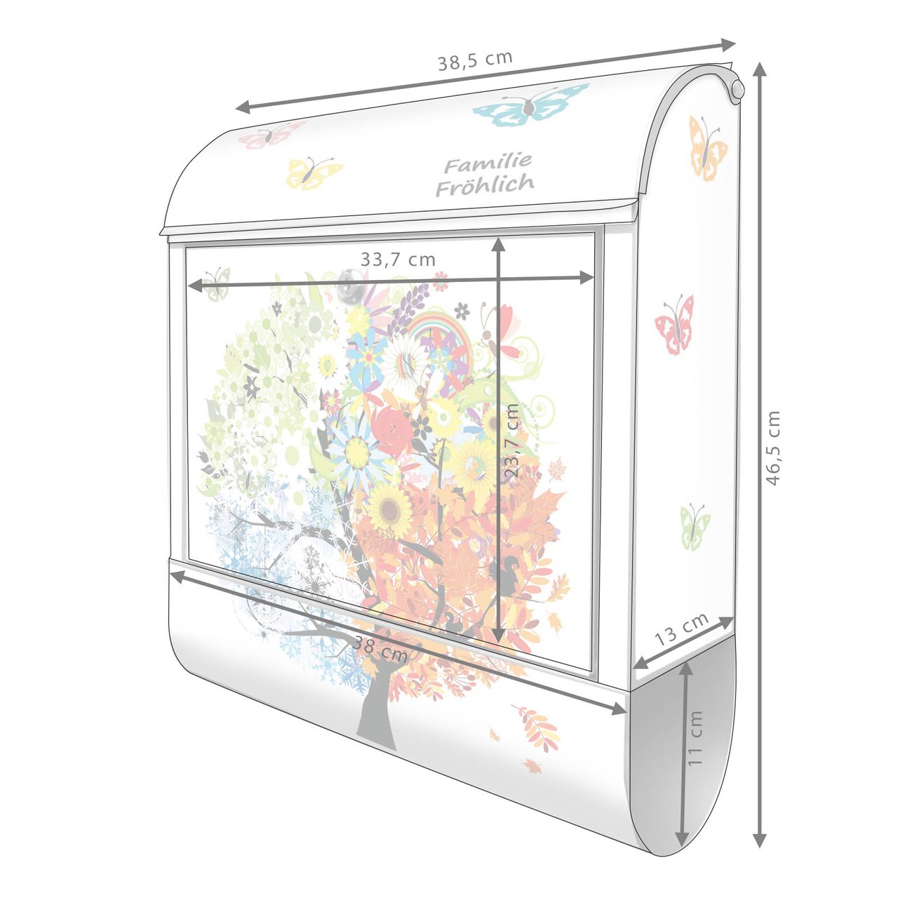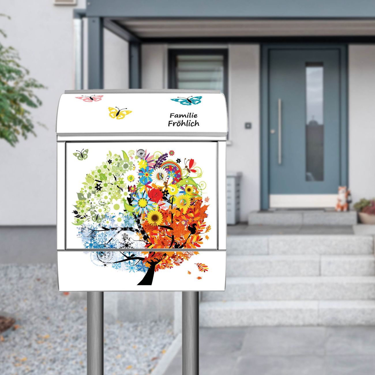 Der banjado Standbriefkasten mit Motiv Motiv Vier Jahreszeiten kombiniert großzügigen Stauraum mit modernem Design. Durch das geräumige Fach finden auch große A4-Sendungen problemlos Platz. Die integrierte Zeitungsrolle sorgt dafür, dass Tageszeitungen und Magazine separat und griffbereit untergebracht sind. Der pulverbeschichtete Standfuß ist farblich passend zum Briefkasten gestaltet und sorgt für ein stimmiges Gesamtbild. Mit dem individuellen Motiv setzen Sie einen optischen Akzent, der sowohl praktisch als auch dekorativ ist.
