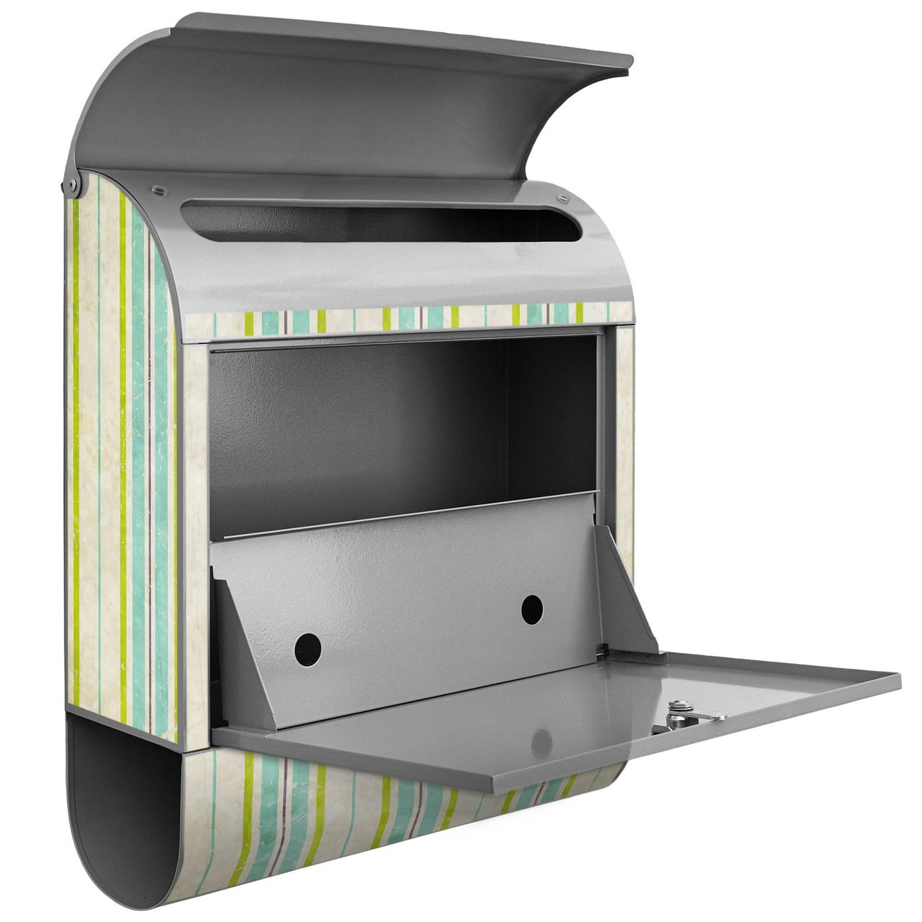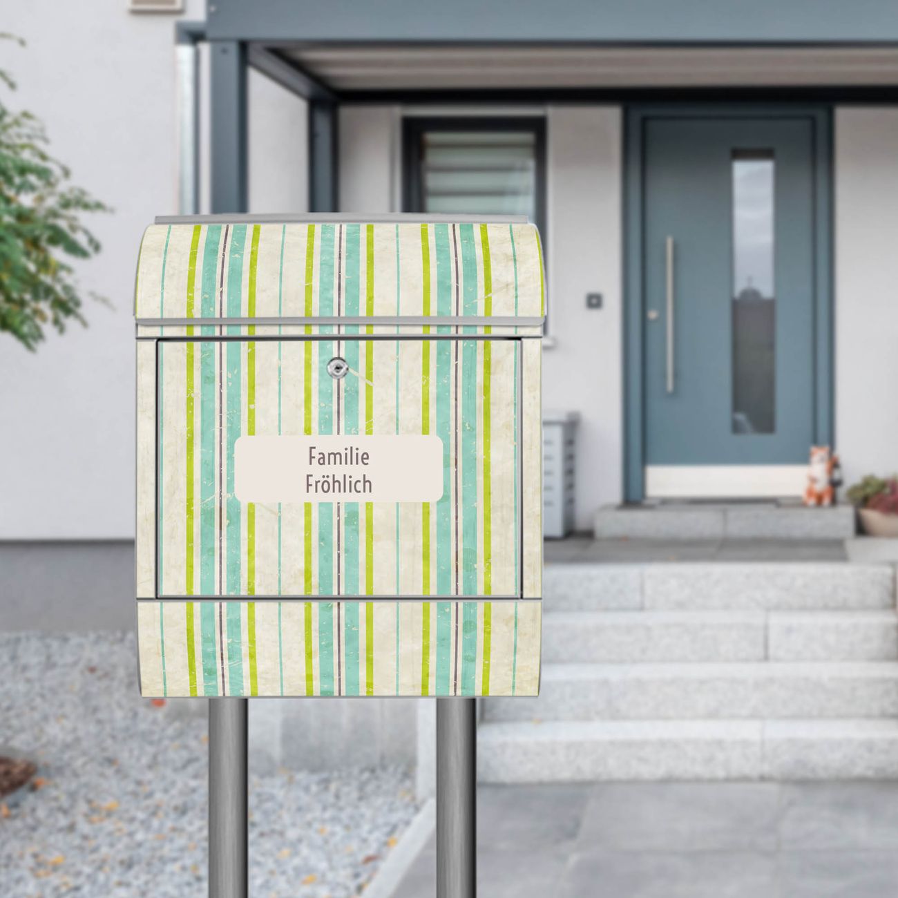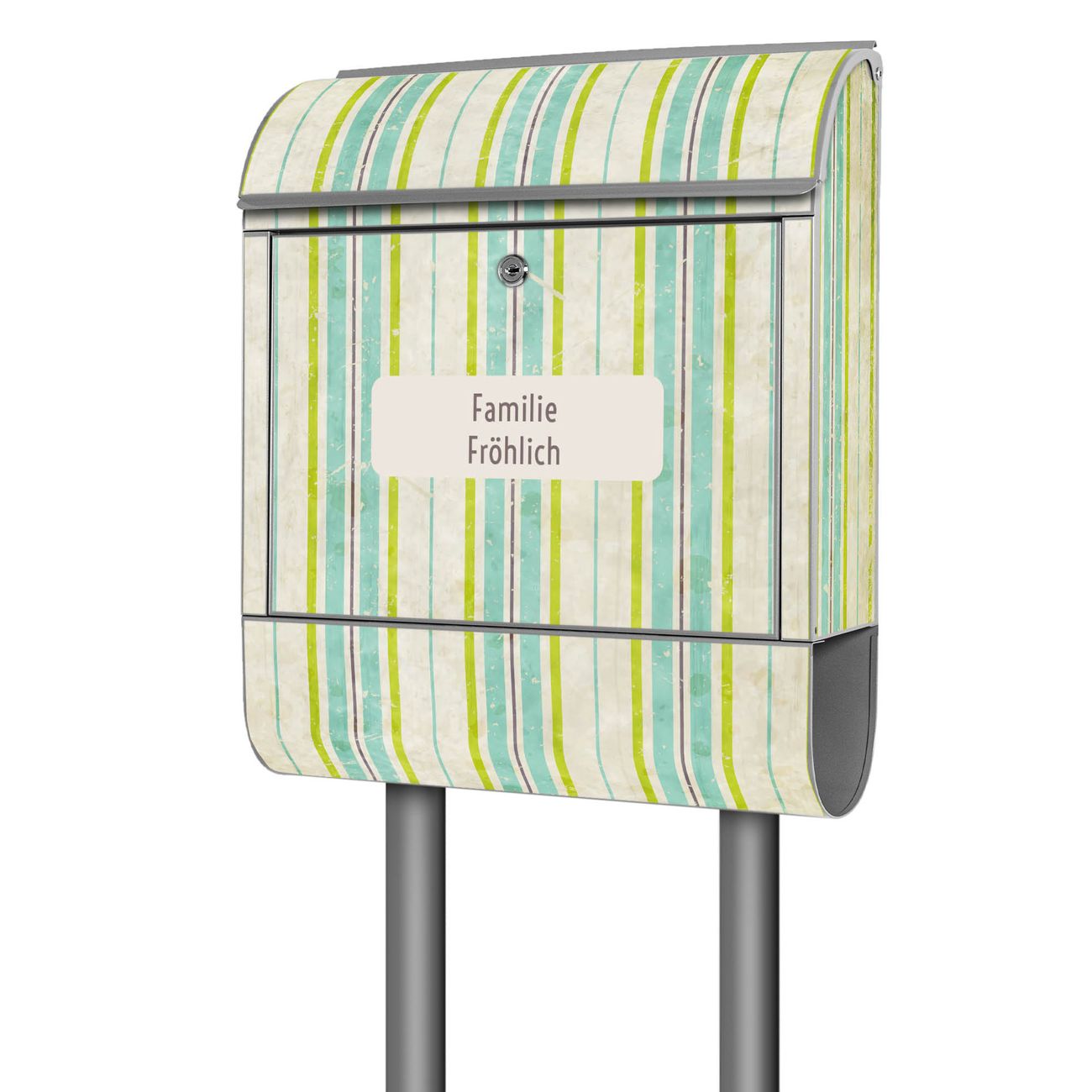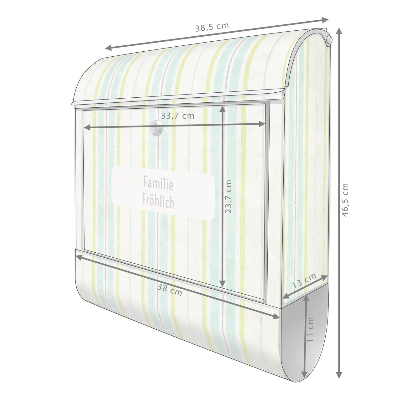 Der banjado Standbriefkasten mit Motiv Motiv Vintage Streifenmuster kombiniert großzügigen Stauraum mit modernem Design. Durch das geräumige Fach finden auch große A4-Sendungen problemlos Platz. Die integrierte Zeitungsrolle sorgt dafür, dass Tageszeitungen und Magazine separat und griffbereit untergebracht sind. Der pulverbeschichtete Standfuß ist farblich passend zum Briefkasten gestaltet und sorgt für ein stimmiges Gesamtbild. Mit dem individuellen Motiv setzen Sie einen optischen Akzent, der sowohl praktisch als auch dekorativ ist.