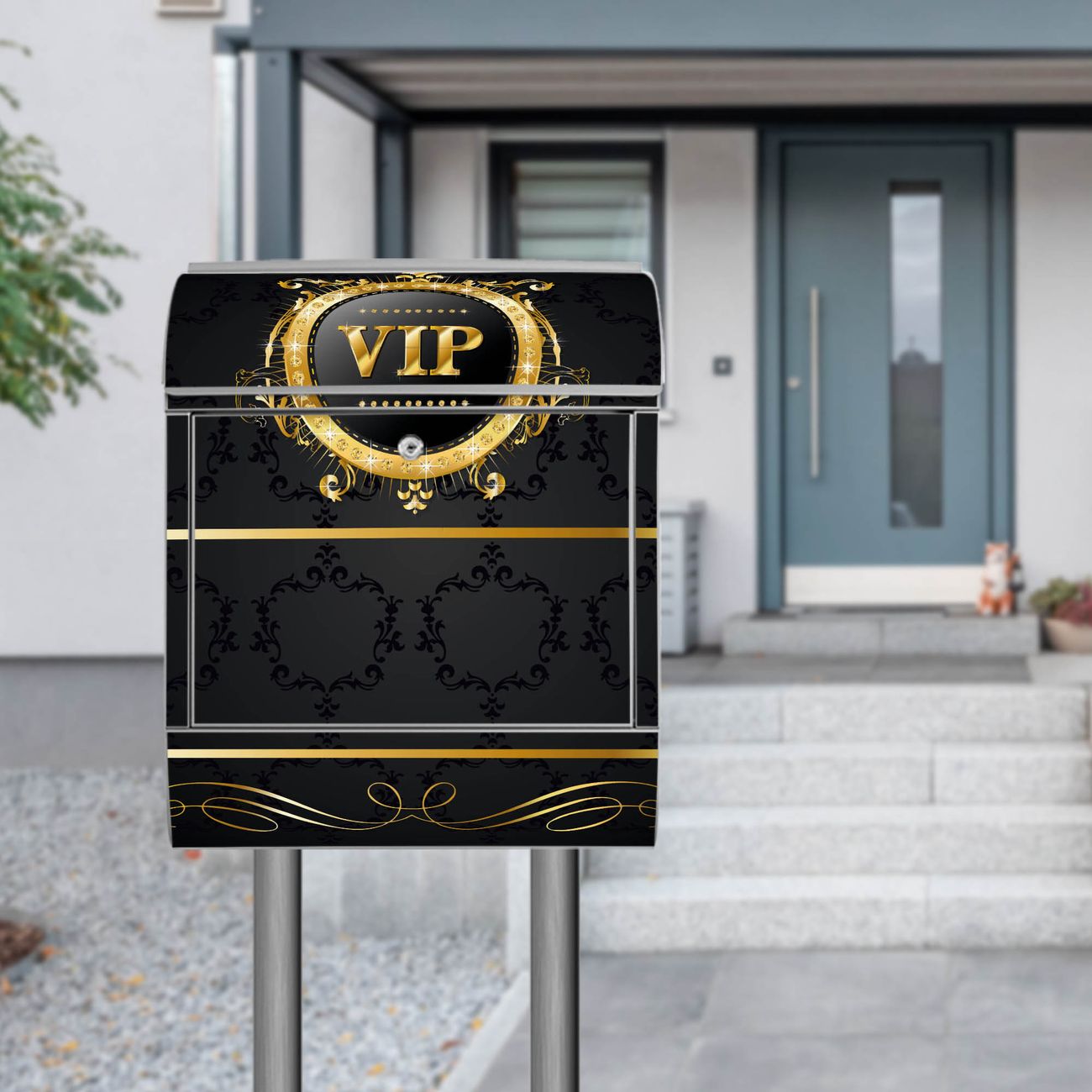 Der banjado Standbriefkasten mit Motiv Motiv VIP kombiniert großzügigen Stauraum mit modernem Design. Durch das geräumige Fach finden auch große A4-Sendungen problemlos Platz. Die integrierte Zeitungsrolle sorgt dafür, dass Tageszeitungen und Magazine separat und griffbereit untergebracht sind. Der pulverbeschichtete Standfuß ist farblich passend zum Briefkasten gestaltet und sorgt für ein stimmiges Gesamtbild. Mit dem individuellen Motiv setzen Sie einen optischen Akzent, der sowohl praktisch als auch dekorativ ist.
