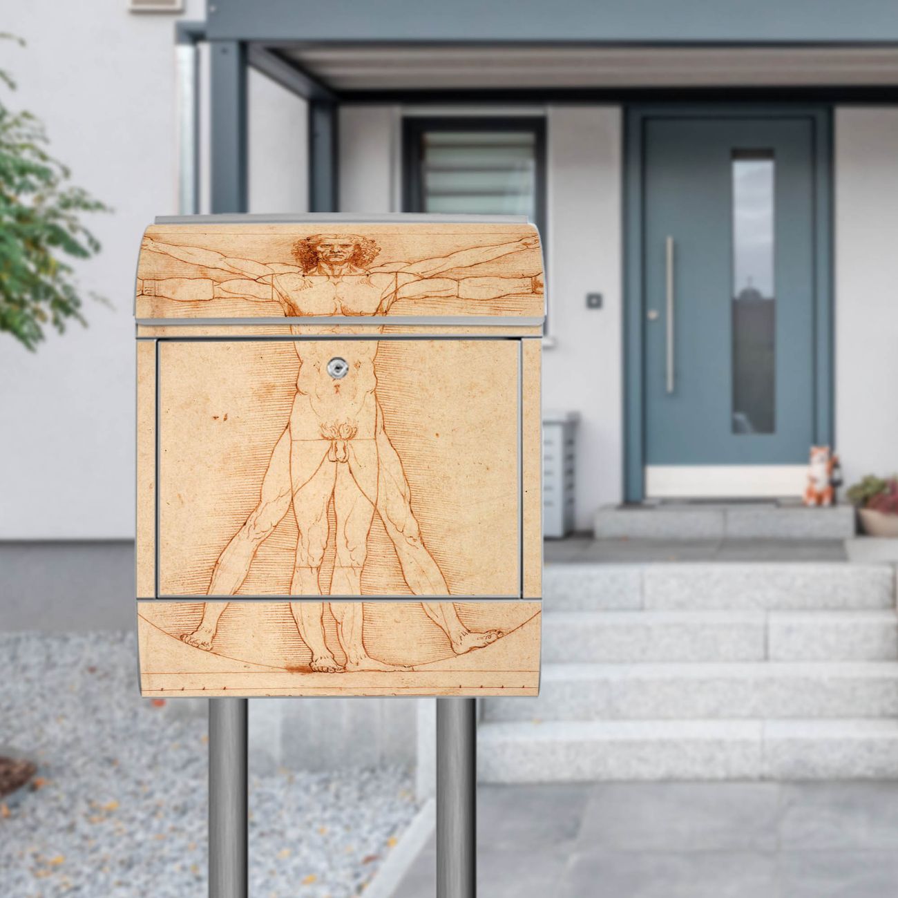 Standbriefkasten Stahl Vitruvianische Figur