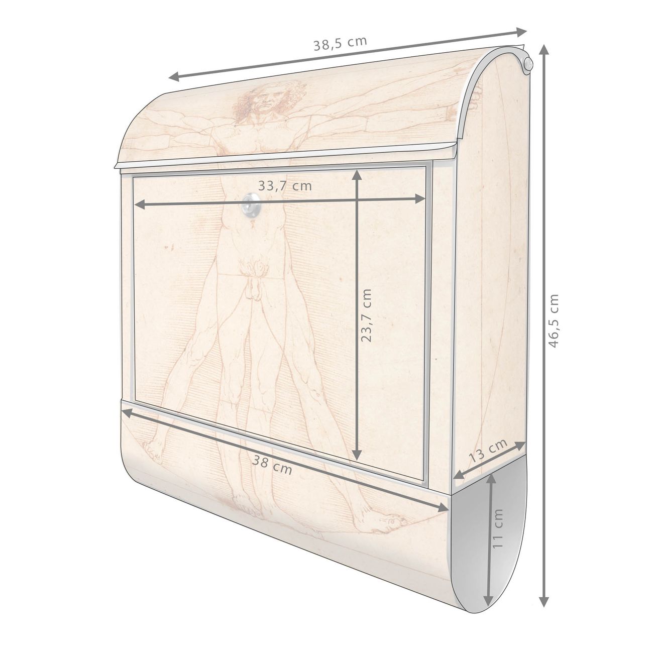 Der banjado Standbriefkasten mit Motiv Motiv Vitruvianische Figur kombiniert großzügigen Stauraum mit modernem Design. Durch das geräumige Fach finden auch große A4-Sendungen problemlos Platz. Die integrierte Zeitungsrolle sorgt dafür, dass Tageszeitungen und Magazine separat und griffbereit untergebracht sind. Der pulverbeschichtete Standfuß ist farblich passend zum Briefkasten gestaltet und sorgt für ein stimmiges Gesamtbild. Mit dem individuellen Motiv setzen Sie einen optischen Akzent, der sowohl praktisch als auch dekorativ ist.