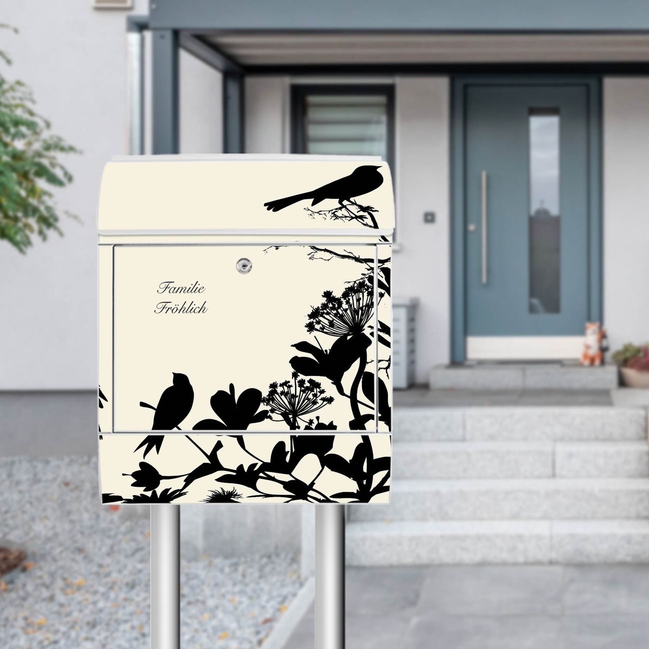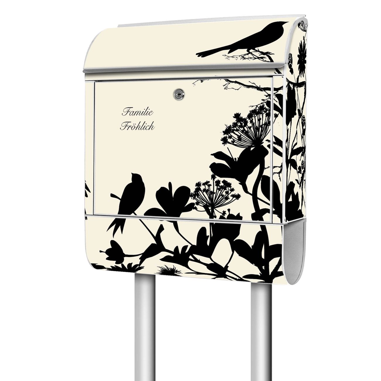 Standbriefkasten Stahl Vögel Schattenriß