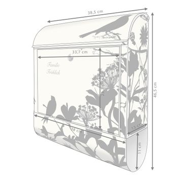 Der banjado Standbriefkasten mit Motiv Motiv Vögel Schattenriß kombiniert großzügigen Stauraum mit modernem Design. Durch das geräumige Fach finden auch große A4-Sendungen problemlos Platz. Die integrierte Zeitungsrolle sorgt dafür, dass Tageszeitungen und Magazine separat und griffbereit untergebracht sind. Der pulverbeschichtete Standfuß ist farblich passend zum Briefkasten gestaltet und sorgt für ein stimmiges Gesamtbild. Mit dem individuellen Motiv setzen Sie einen optischen Akzent, der sowohl praktisch als auch dekorativ ist.