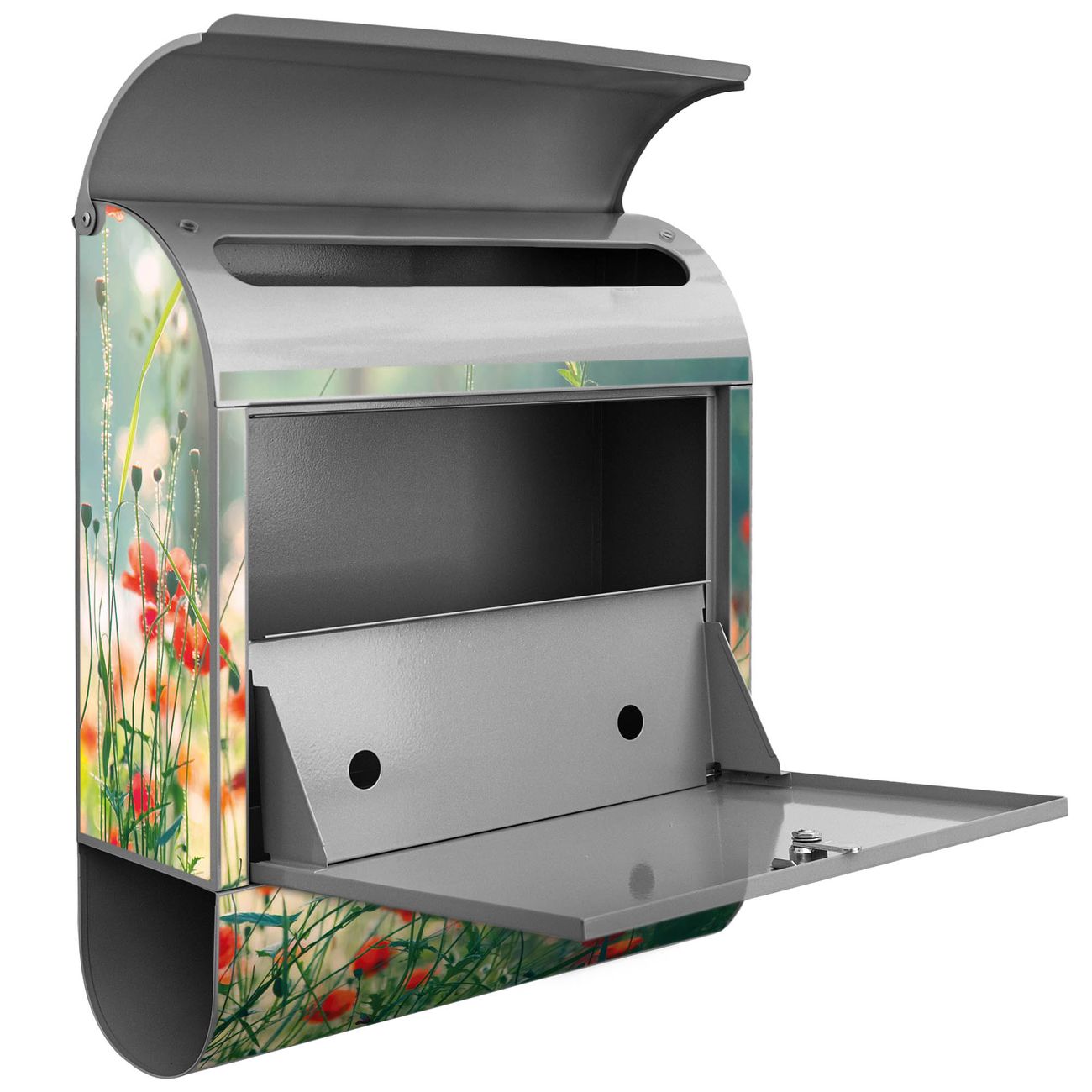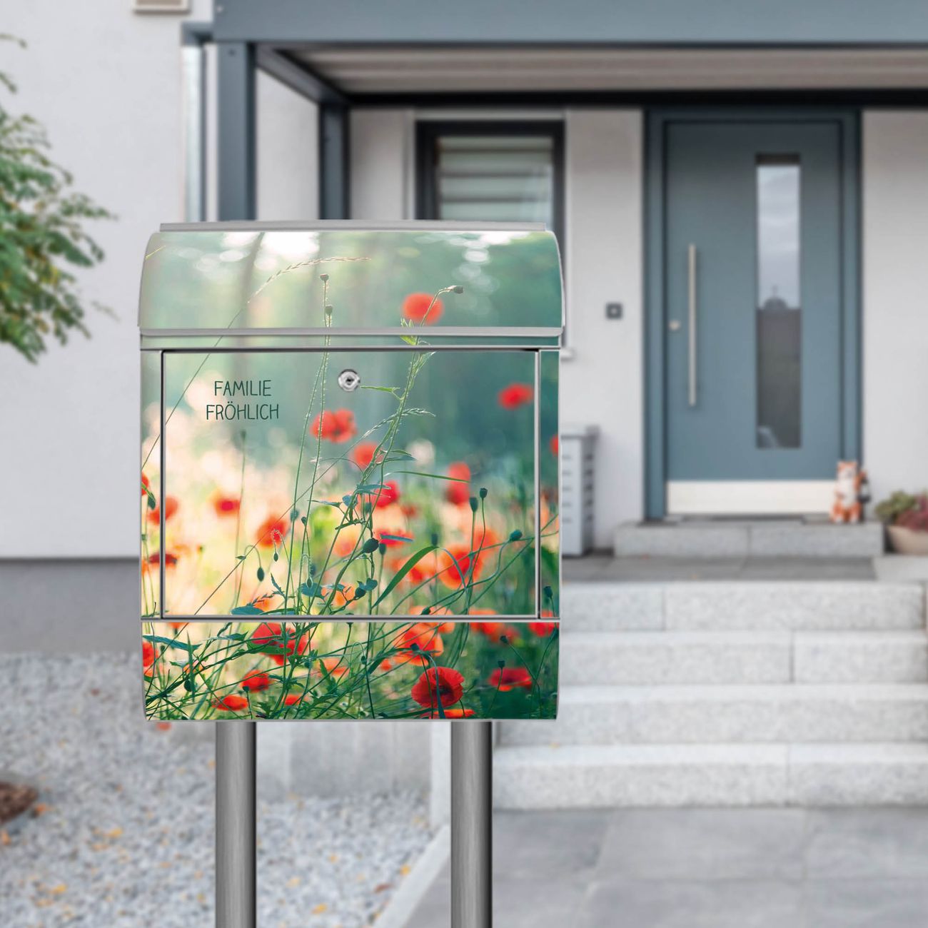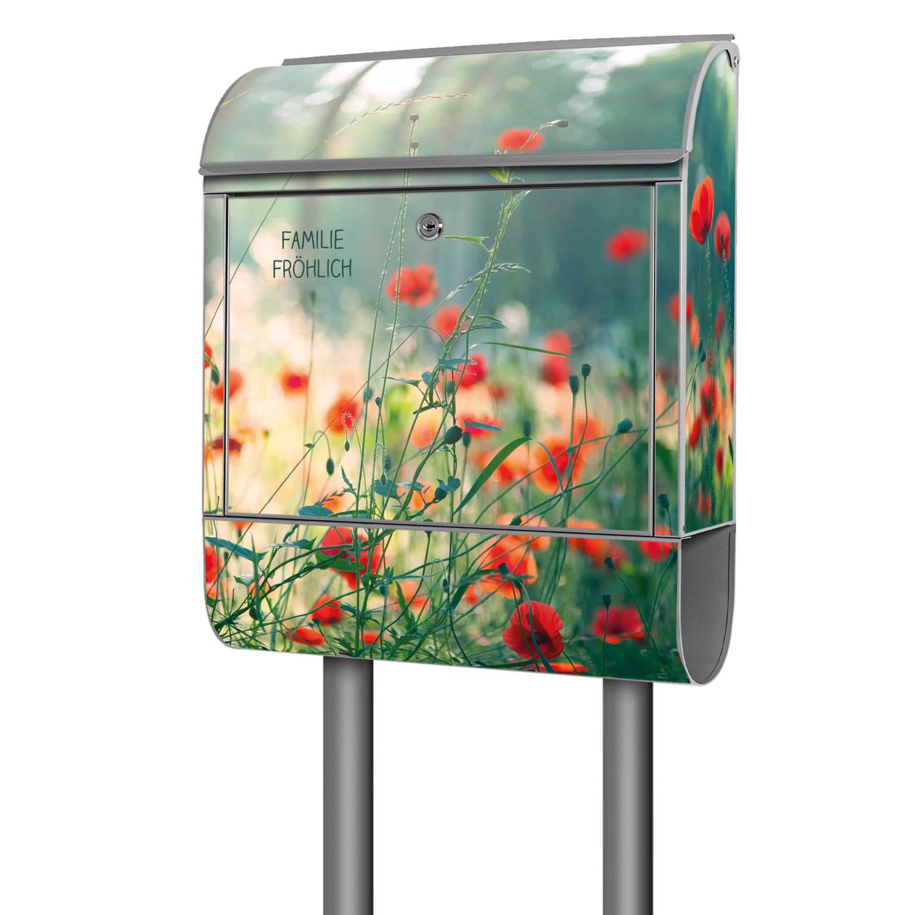 Der banjado Standbriefkasten mit Motiv Motiv Waldmohn kombiniert großzügigen Stauraum mit modernem Design. Durch das geräumige Fach finden auch große A4-Sendungen problemlos Platz. Die integrierte Zeitungsrolle sorgt dafür, dass Tageszeitungen und Magazine separat und griffbereit untergebracht sind. Der pulverbeschichtete Standfuß ist farblich passend zum Briefkasten gestaltet und sorgt für ein stimmiges Gesamtbild. Mit dem individuellen Motiv setzen Sie einen optischen Akzent, der sowohl praktisch als auch dekorativ ist.