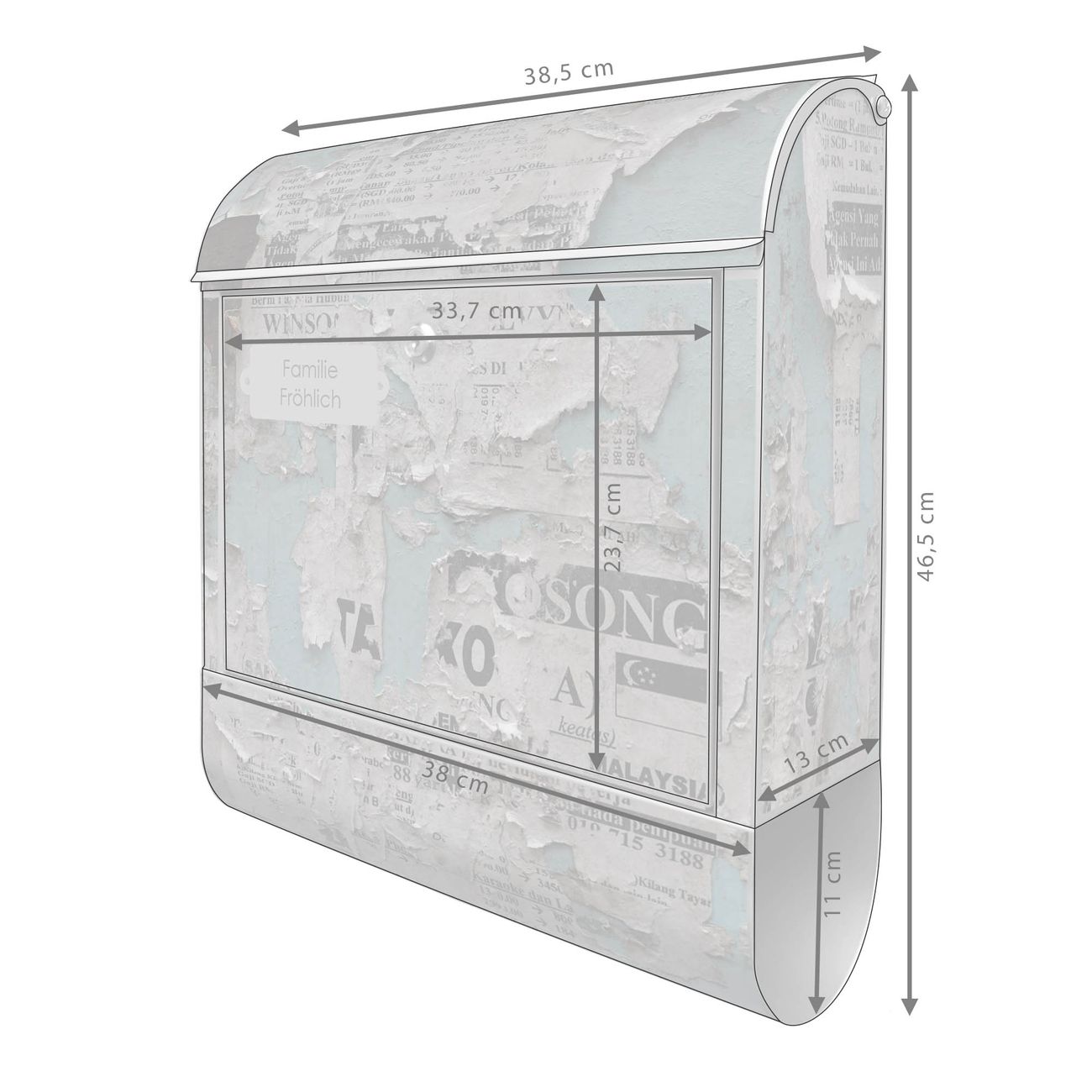 Der banjado Standbriefkasten mit Motiv Motiv Wand mit Zeitungen kombiniert großzügigen Stauraum mit modernem Design. Durch das geräumige Fach finden auch große A4-Sendungen problemlos Platz. Die integrierte Zeitungsrolle sorgt dafür, dass Tageszeitungen und Magazine separat und griffbereit untergebracht sind. Der pulverbeschichtete Standfuß ist farblich passend zum Briefkasten gestaltet und sorgt für ein stimmiges Gesamtbild. Mit dem individuellen Motiv setzen Sie einen optischen Akzent, der sowohl praktisch als auch dekorativ ist.