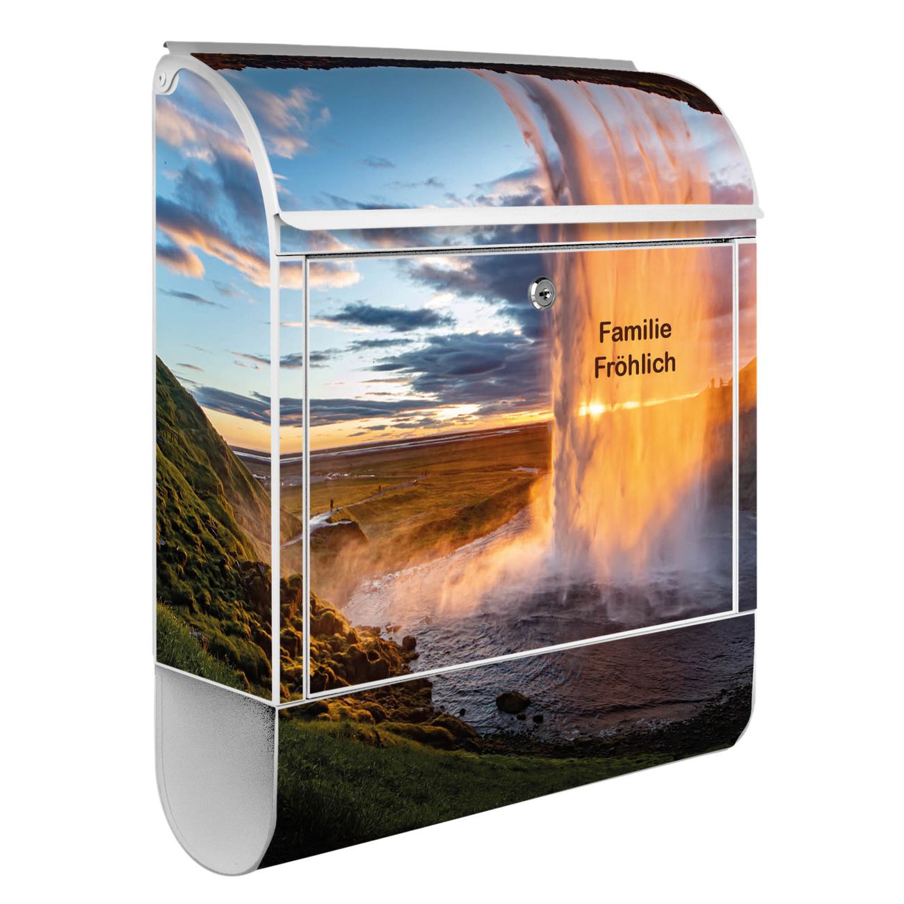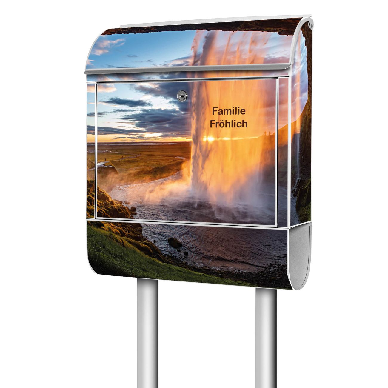 Standbriefkasten Stahl Wasserfall im Sonnenlicht