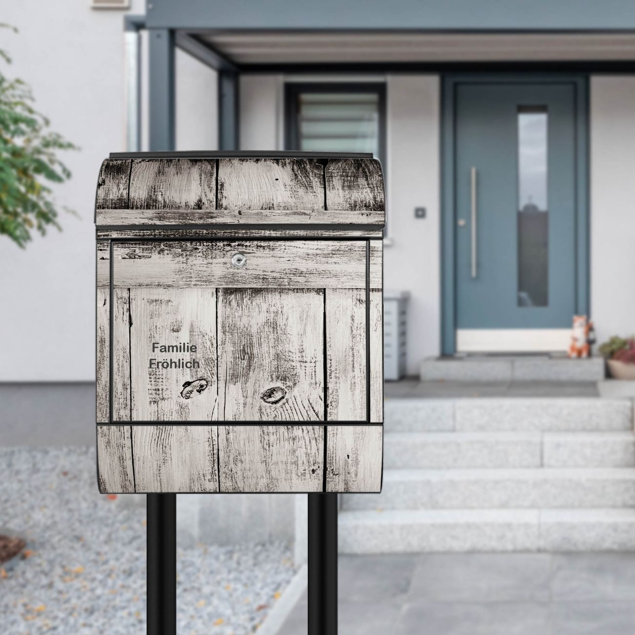 Standbriefkasten Stahl weiße Bretter