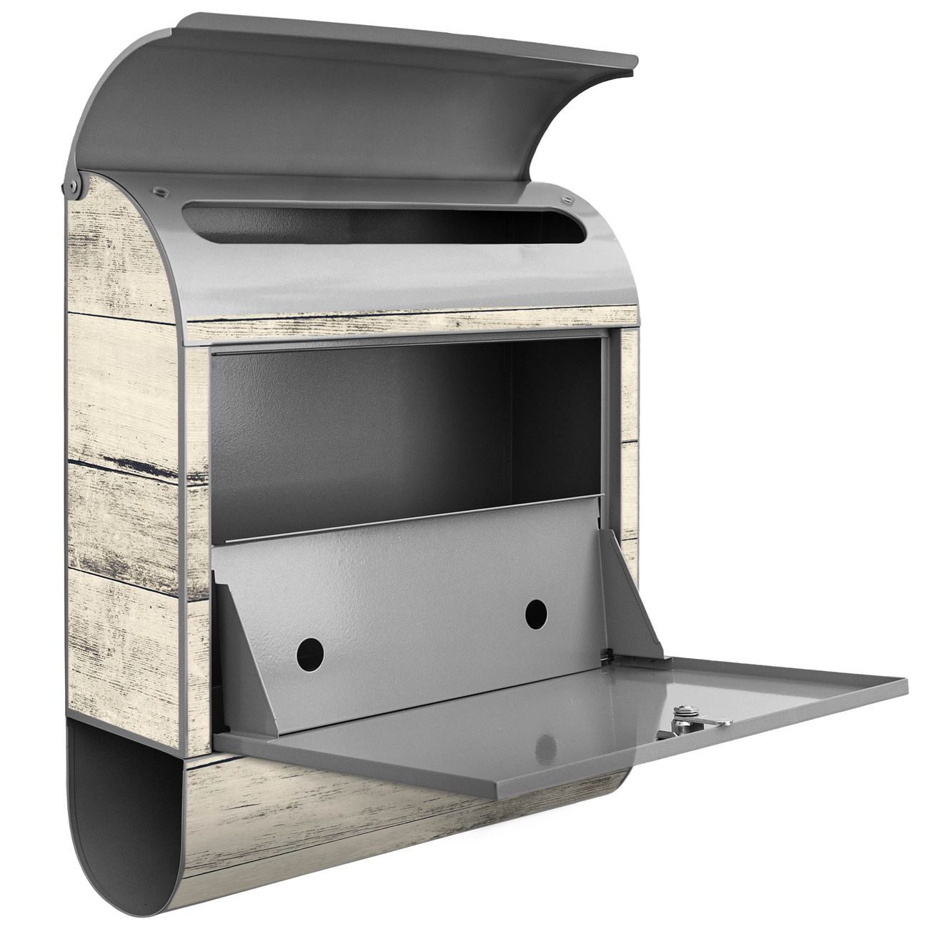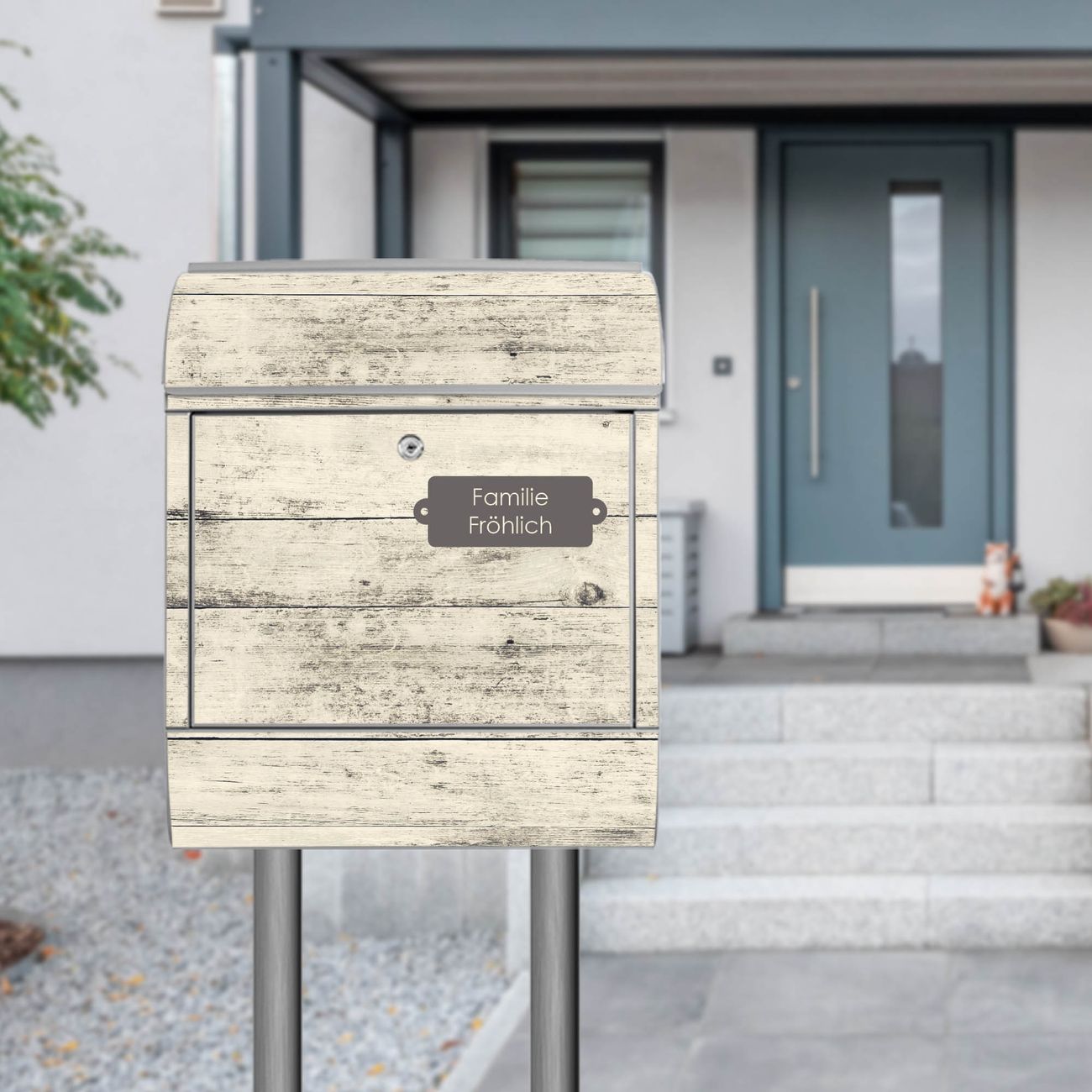 Der banjado Standbriefkasten mit Motiv Motiv Weiße Planken H kombiniert großzügigen Stauraum mit modernem Design. Durch das geräumige Fach finden auch große A4-Sendungen problemlos Platz. Die integrierte Zeitungsrolle sorgt dafür, dass Tageszeitungen und Magazine separat und griffbereit untergebracht sind. Der pulverbeschichtete Standfuß ist farblich passend zum Briefkasten gestaltet und sorgt für ein stimmiges Gesamtbild. Mit dem individuellen Motiv setzen Sie einen optischen Akzent, der sowohl praktisch als auch dekorativ ist.