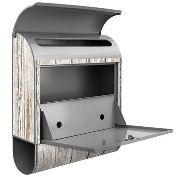 Der banjado Standbriefkasten mit Motiv Motiv Weißes Holz kombiniert großzügigen Stauraum mit modernem Design. Durch das geräumige Fach finden auch große A4-Sendungen problemlos Platz. Die integrierte Zeitungsrolle sorgt dafür, dass Tageszeitungen und Magazine separat und griffbereit untergebracht sind. Der pulverbeschichtete Standfuß ist farblich passend zum Briefkasten gestaltet und sorgt für ein stimmiges Gesamtbild. Mit dem individuellen Motiv setzen Sie einen optischen Akzent, der sowohl praktisch als auch dekorativ ist.